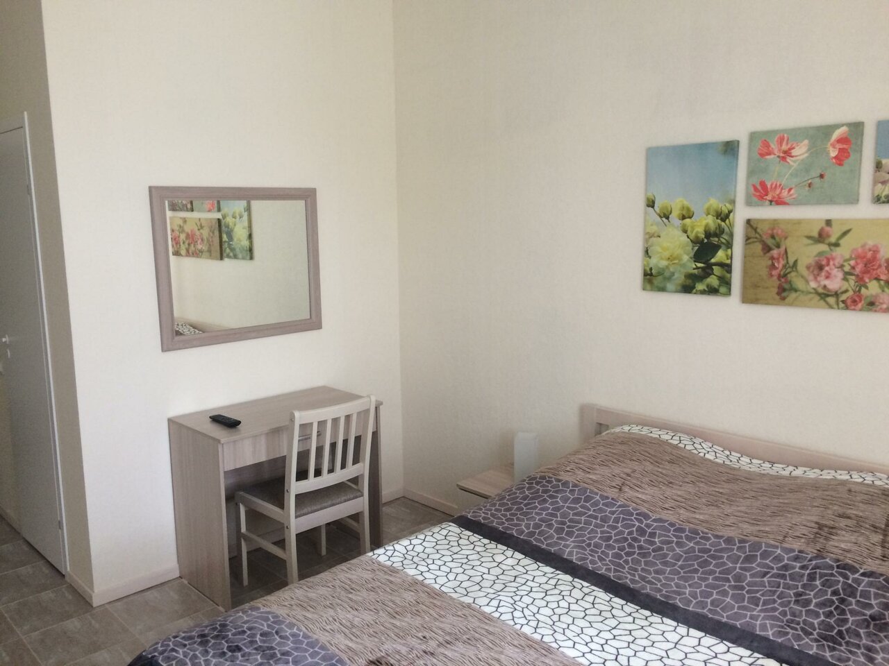Двухспальная кровать, односпальная кровать или односпальный диван, тумбочки, шкаф. Балкон с летней мебелью. Сплит-система, холодильник, телевизор, ванная комната с душем, предоставляется набор одноразовой косметики.