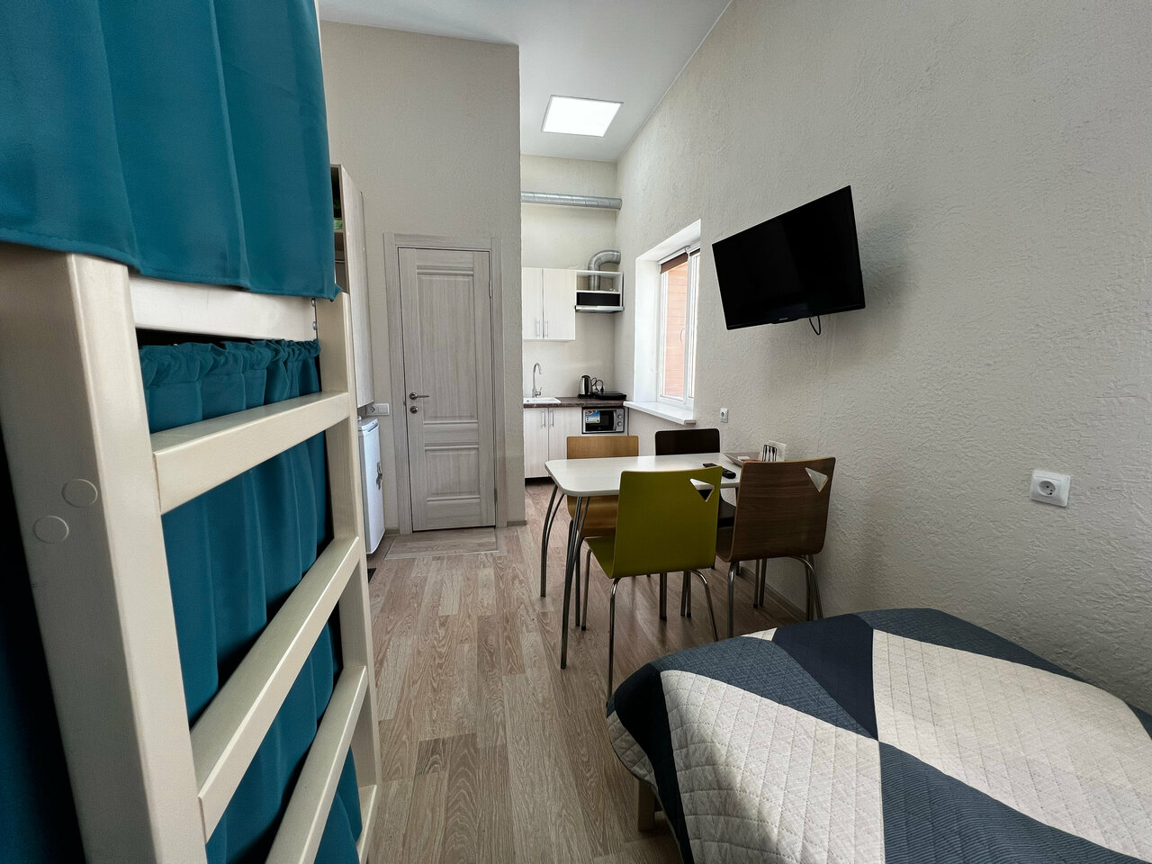 Были 5 дней. Отель понравился. Чисто, для проживания есть всё необходимое: кухня,посуда, удобная кровать и диван, телевизор, холодильник, фен, чайник, микроволновка. Внизу отеля находится пятёрочка. Приветливый персонал. Плюсов можно написать ещё кучу… А вот из минусов-сами выносили мусор, просили чистые мешки и хотелось бы каждый день, чтобы клали одноразовый гель для душа и шампунь. Интернет не работает… Рекомендуем всем этот гостеприимный отель!!!!