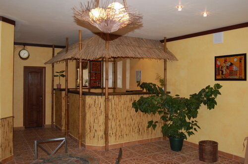 - Оригинальный интерьер (африканские мотивы, камины).; Внимательный и дружелюбный персонал.; Демократичная цена.; Бесплатная парковка.; Хорошая душевая.