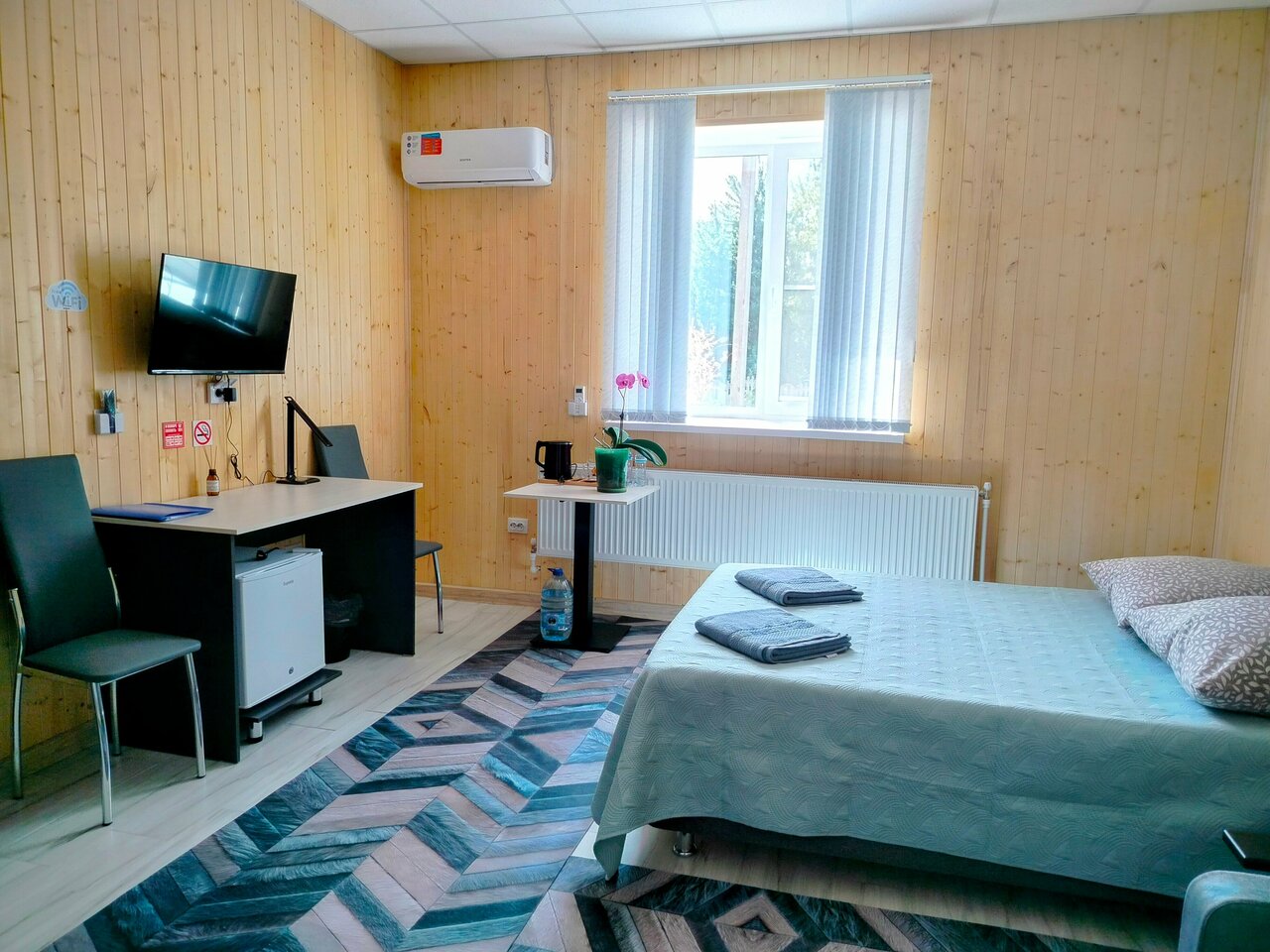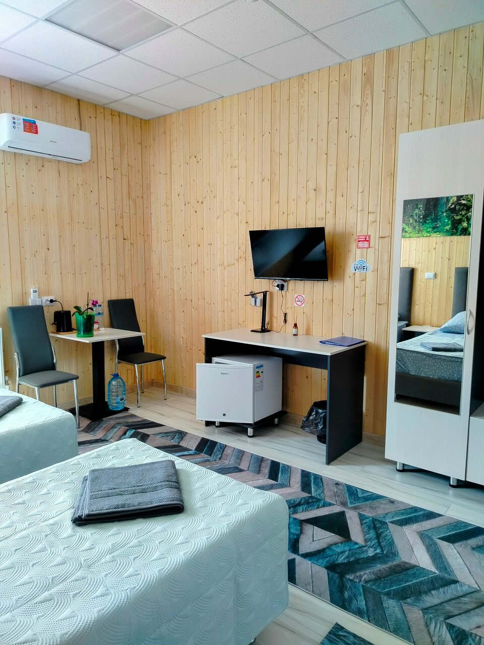 Услуги: — Номера с кондиционером, телевизором, холодильником, феном, тапочками. — Бесплатная парковка и Wi-Fi. — Общая кухня, стиральная машина, утюг, прачечная. — Уборка номеров.