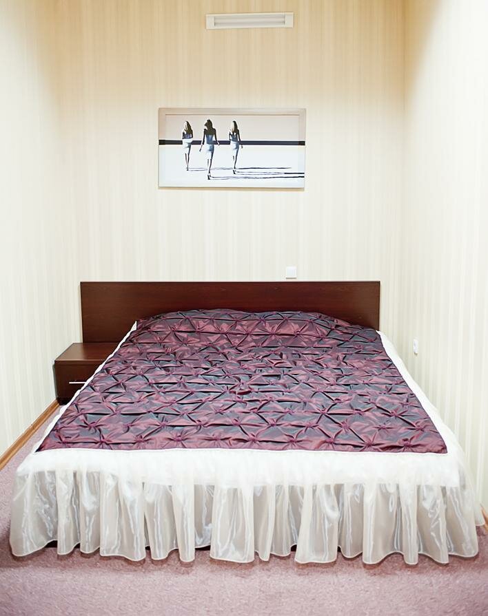 Количество - 4В номере: кровать с ортопедическим матрацем (160 см/140 см), прикроватный коврик, комплект постельных принадлежностей и полотенец, бра над кроватью, шкаф для одежды, телевизор, сплит-система, зеркало, стол, 2 стула, холодильник, посуда