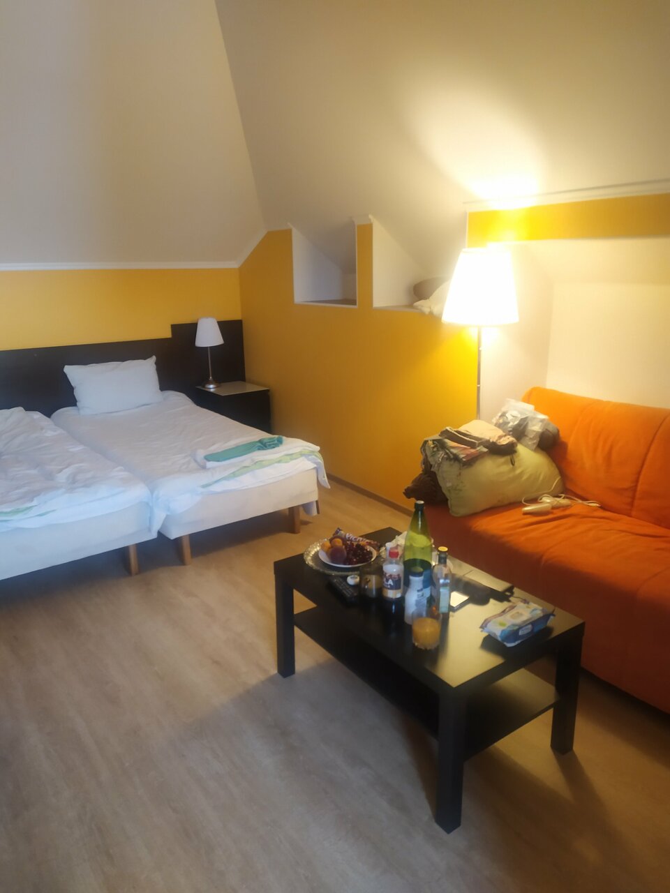 Очень мило, но следует учитывать, что мы с компанией из 12 человек снимали весь дом целиком на Новый Год, поэтому проживание совместно с незнакомыми людьми оценить не можем. Как дом на компанию — отлично: просторная кухня с кучей посуды, две (!) большие гостиные (одна просто большая, вторая очень большая), удобные номера. Человек 15 сюда влезут легко.