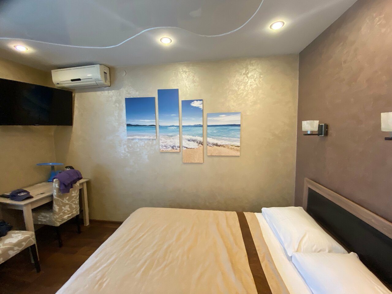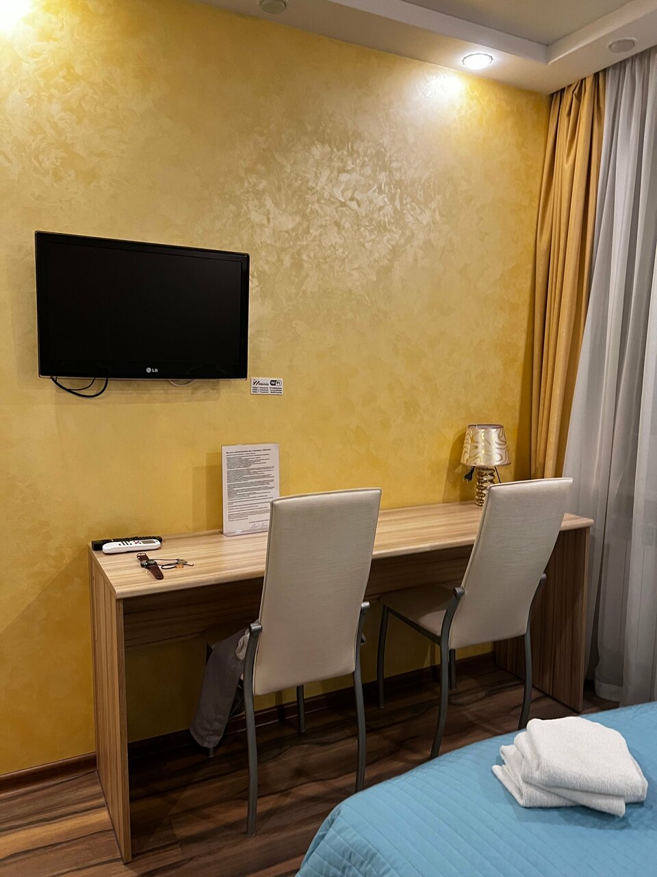 Очень уютный семейный отель. Жили в полулюксе с балконом. Прекрасный просторный номер! Всё сделано с душой. Оригинальные дизайнерские решения. Единственный недостаток — далеко от центра города.
