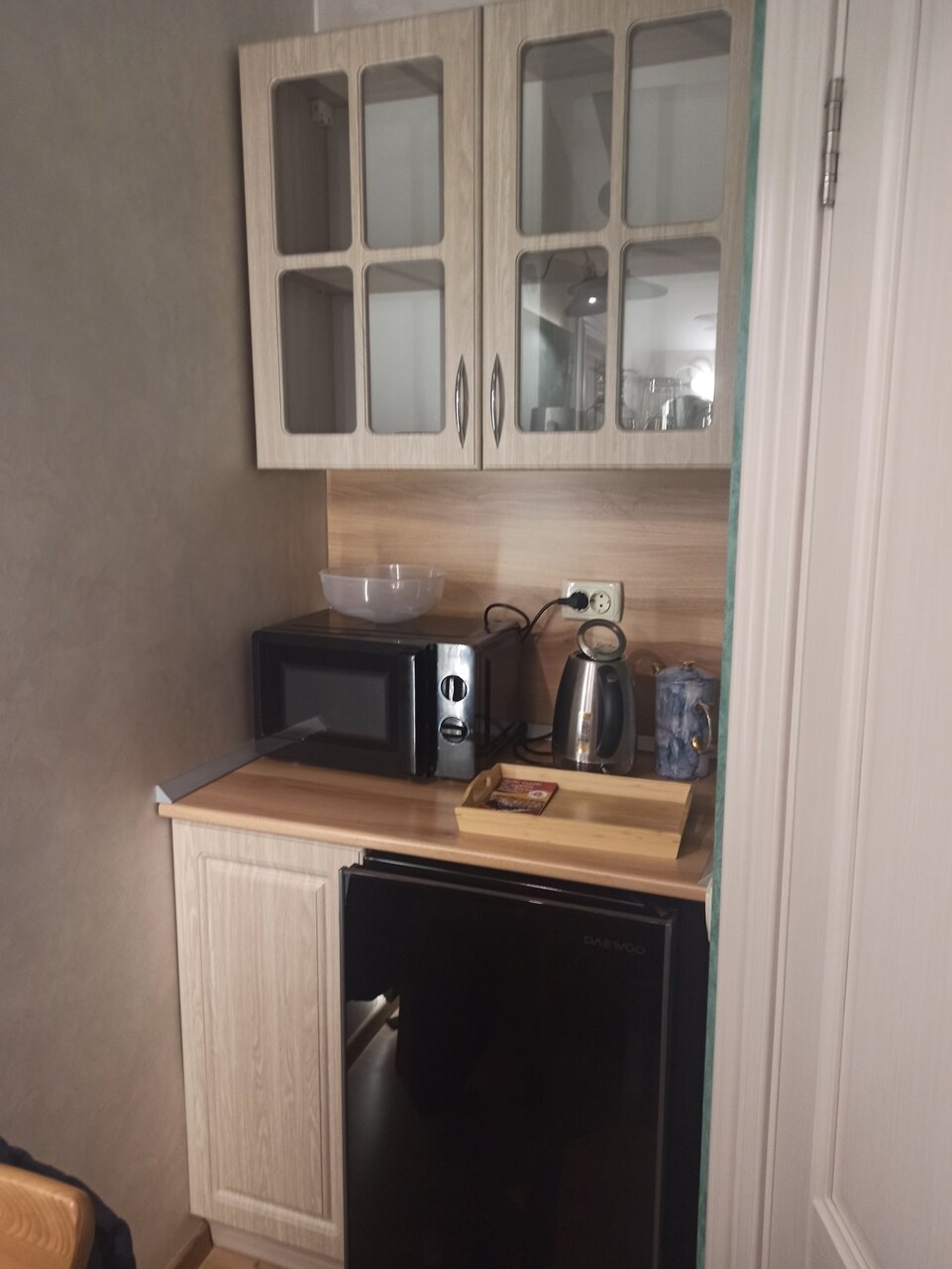 Замечательный гостевой дом и приятные хозяйки! Номер очень уютный, есть мини-кухня (холодильник, чайник, микроволновка, посуда). Проживание с завтраками. (Сырники -обалденные!)
