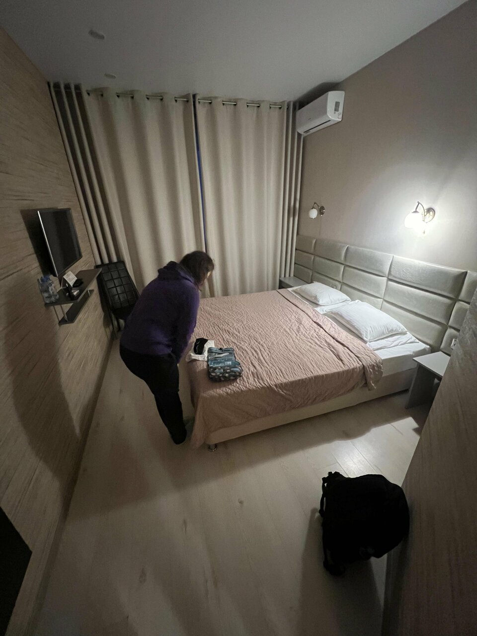 Заехали со старенькой бабушкой. Встретили очень гостеприимно, номера чистые, хрустящие простыни, мягкие и удобные кровати. Все новенькое, Жили в номере на 3-их. Спасибо Татьяне.