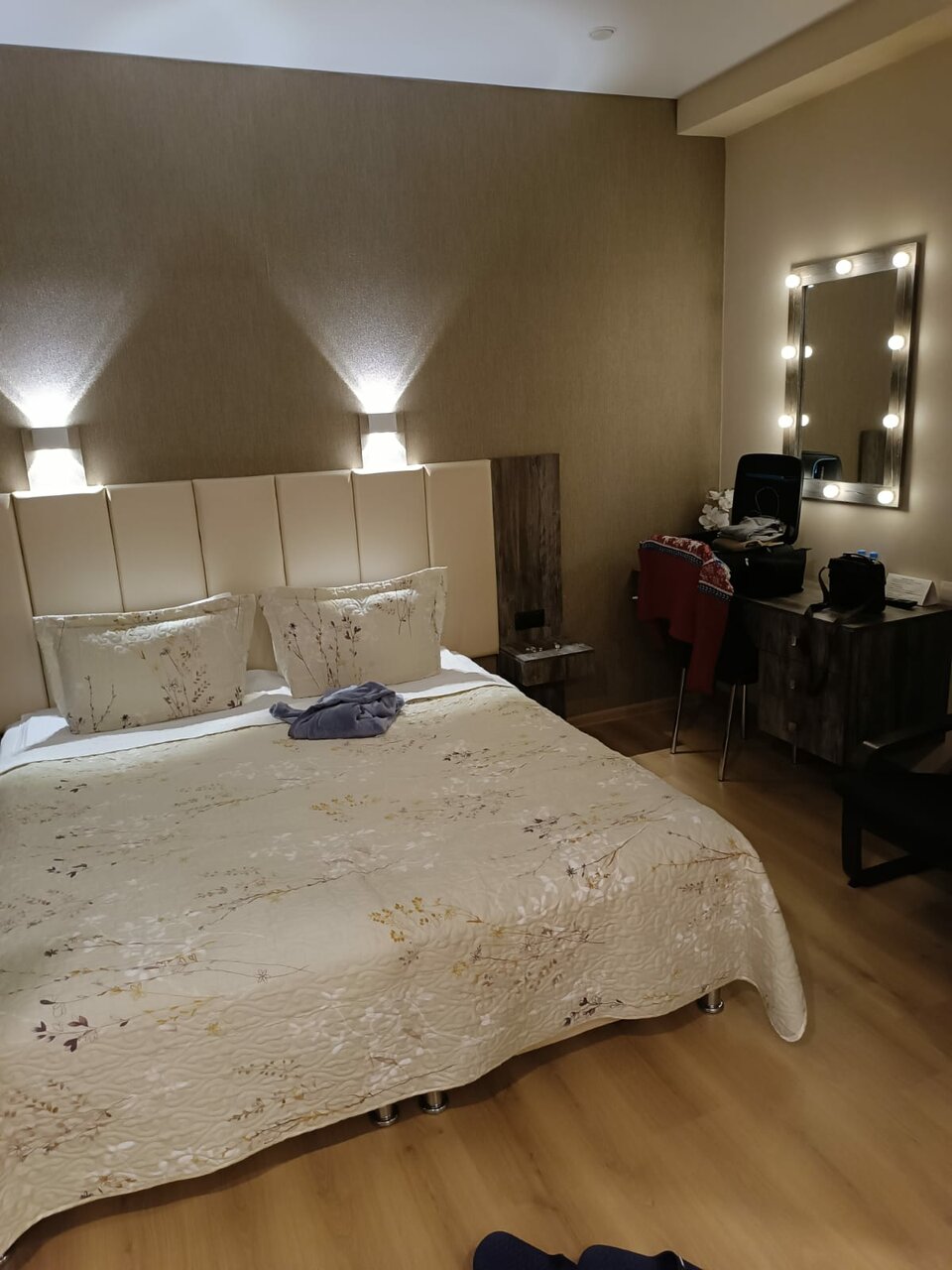 Чистый отель. В номере большая удобная кровать, чистое постельное белье. Все необходимые предметы есть . Утром можно заказать завтрак за 200 рэ. Советую.
