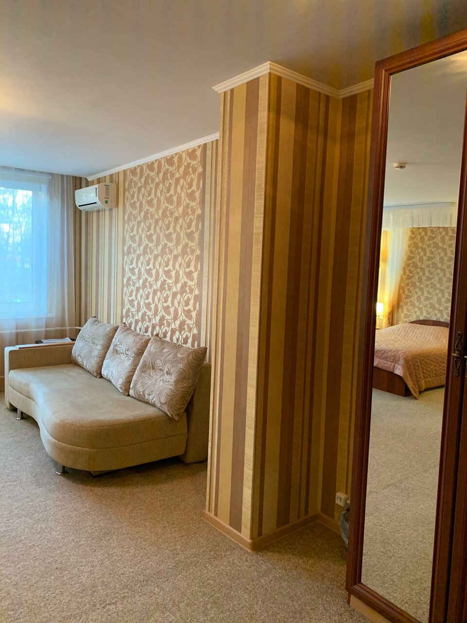 Большой номер категории ЛЮКС для большой семьи.4-х +1 местный, две отдельные комнаты комнатный, ванна/душ/туалет. В одной комнате большая двухспальная кровать, во второй комнате диван. В любую комнату можно поставить дополнительное спальное место.