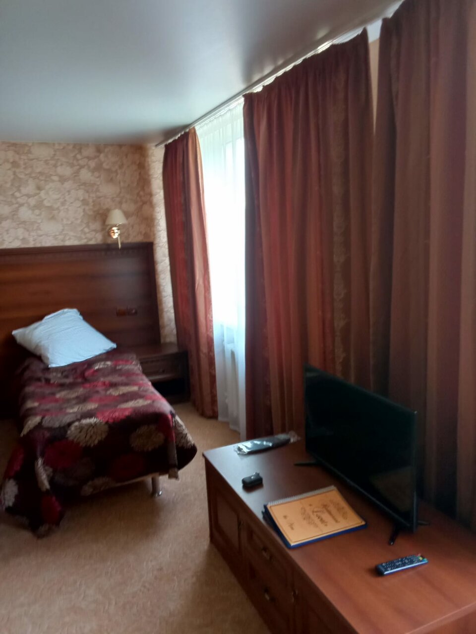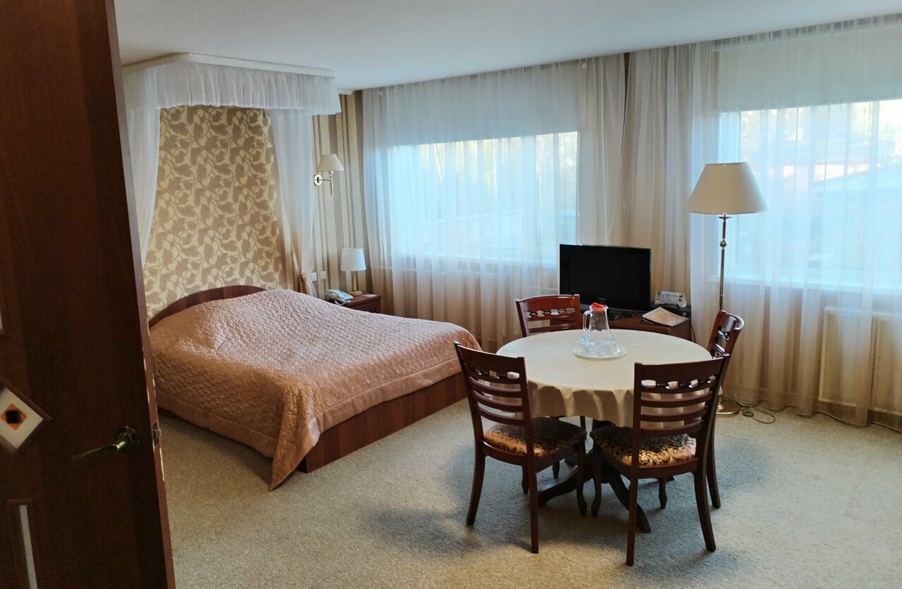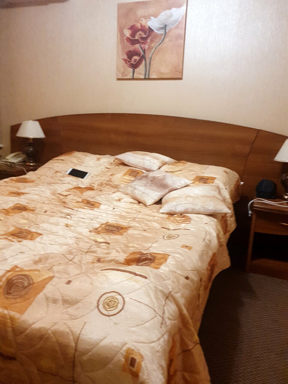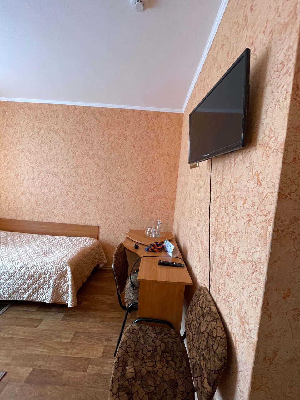 Back in USSR. Соскучились по СССР — вам сюда! Печально что в таком удачном месте, такая запущенная гостиница. В ресторане готовят средненько, говорят что готовится горячее 30-40 минут. А когда приносят еду она теплая, как будто разогрели. 21 век на дворе а в номере к телевизору прикреплён 2 -х метровый кусок кабеля вместо антенны. Как выяснилось есть гостиницы получше. Сюда только если больше некуда.