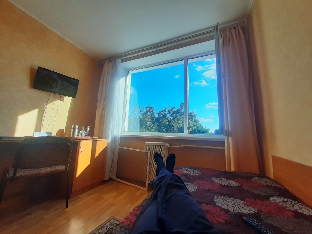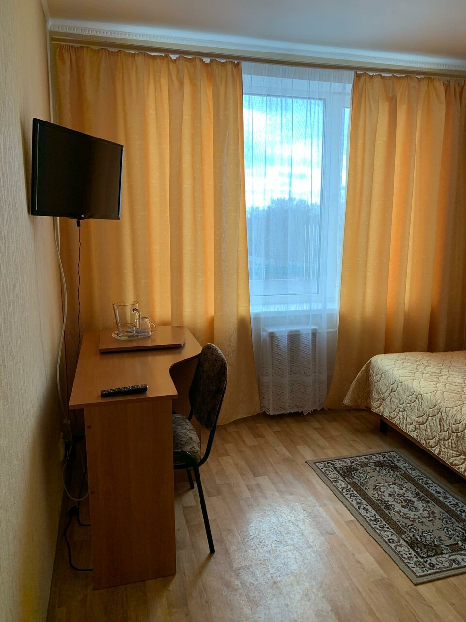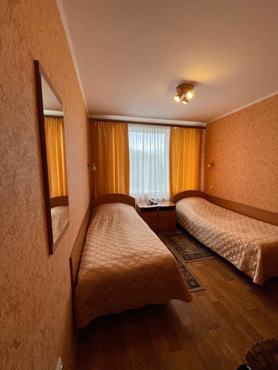 Back in USSR. Соскучились по СССР — вам сюда! Печально что в таком удачном месте, такая запущенная гостиница. В ресторане готовят средненько, говорят что готовится горячее 30-40 минут. А когда приносят еду она теплая, как будто разогрели. 21 век на дворе а в номере к телевизору прикреплён 2 -х метровый кусок кабеля вместо антенны. Как выяснилось есть гостиницы получше. Сюда только если больше некуда.