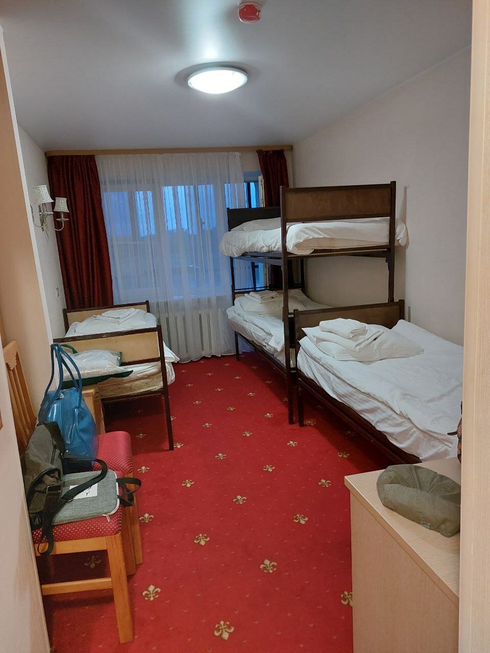 Так получилось, что в наши даты заезда во всем отеле жили четыре команды хоккеистов подростков.Это было лихо.Слышымость ужасная, мы думали,что от топота рухнет потолок, а двери в номер просто снесут с петель. Первые сутки наши жалобы были в никуда. Настроение от прибывания сошло на ноль. Так что если бронирует этот отель, уточняйте будут ли там какие либо группы детей. Далее по номеру, ковролин грязный и вонючий, простыни драные, полотенца в пятнах.Кухня нормальная, ждали не долго обслуживание если поторопить, то откликаются.На ресепшене зависит от смены, или полное без участие или попытка исправить ситуацию.В последний день на выезде, дали презент в виде извинений за наши поднятые нервы.