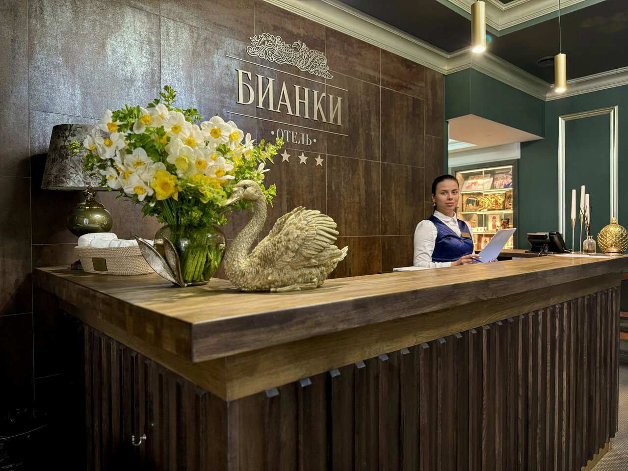 Контакты: — Телефоны: +7 (8162) 63-73-93 (стационарный), +7 (911) 623-73-93 (мобильный). — Сайт: www.biankihotel.ru.