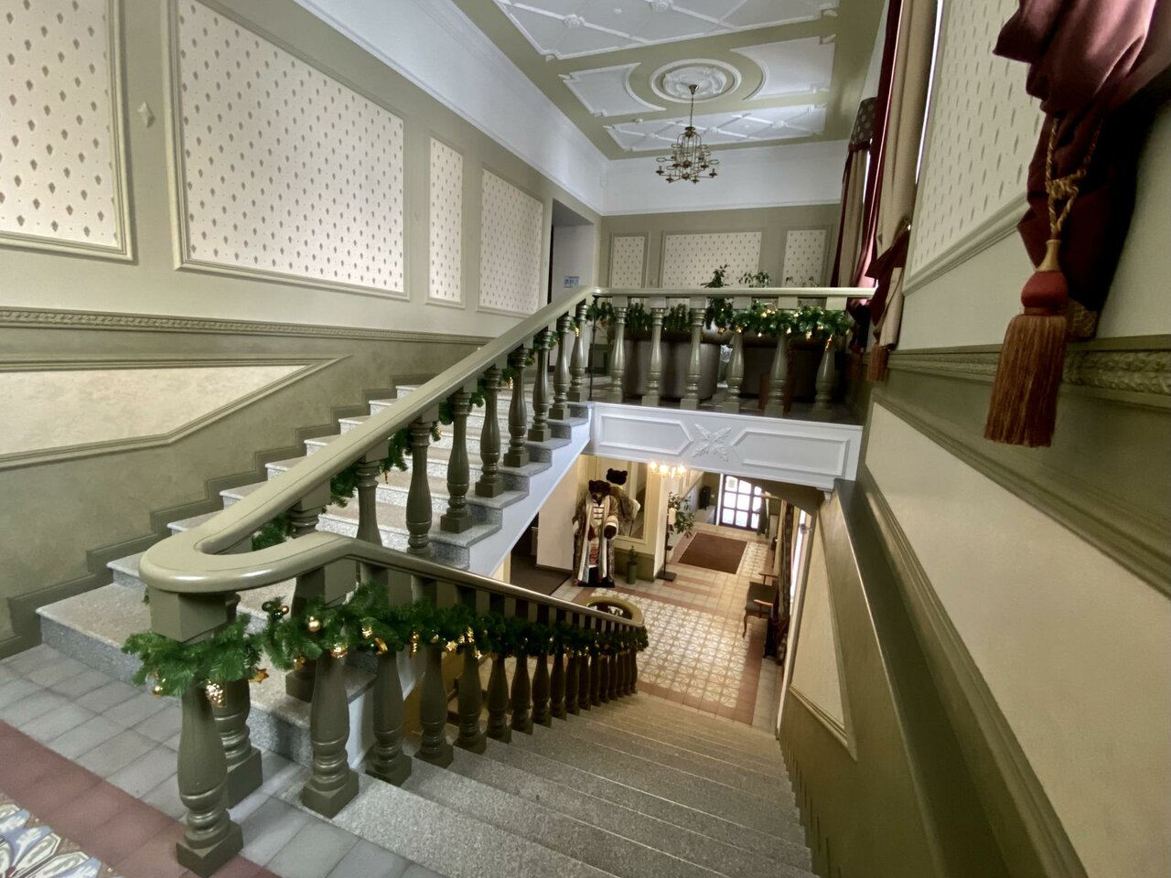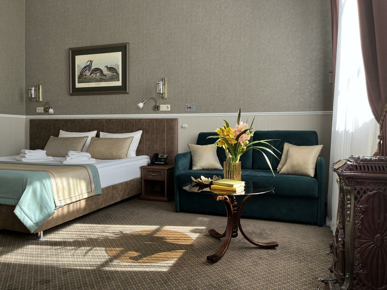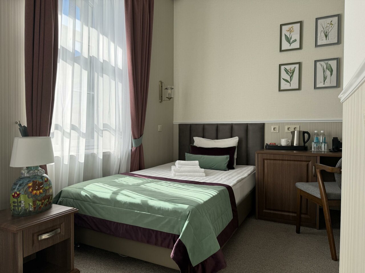 - Соответствие заявленным звёздам.; Хороший шведский стол на завтрак (разнообразие блюд).; Возможность заказать ужин в номер.; Историческое здание (бывший особняк).; Полный набор принадлежностей (полотенца, шампунь, зубные щётки и др.).