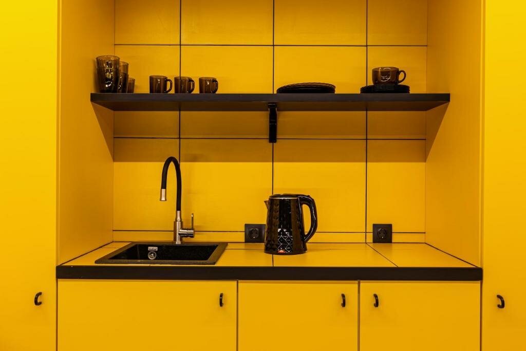 Очень хорошая слышимость. Голоса, передвижения, открывание дверей — все слышно. Был зимой, за бортом -10. Пол в комнате ледяной. Батареи у них просто для красоты. Нужно ждать кондиционер пока нагреет. Как только выключаешь — сразу начинаешь мерзнуть. В номере чисто и по своему уютно. Очень понравился дизайн студий.