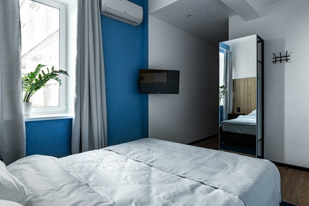 - Возможность настройки температуры в номере.; Близость к достопримечательностям, магазинам, кафе.; Свежий ремонт.; Удобные матрасы и подушки.; Адекватные цены.