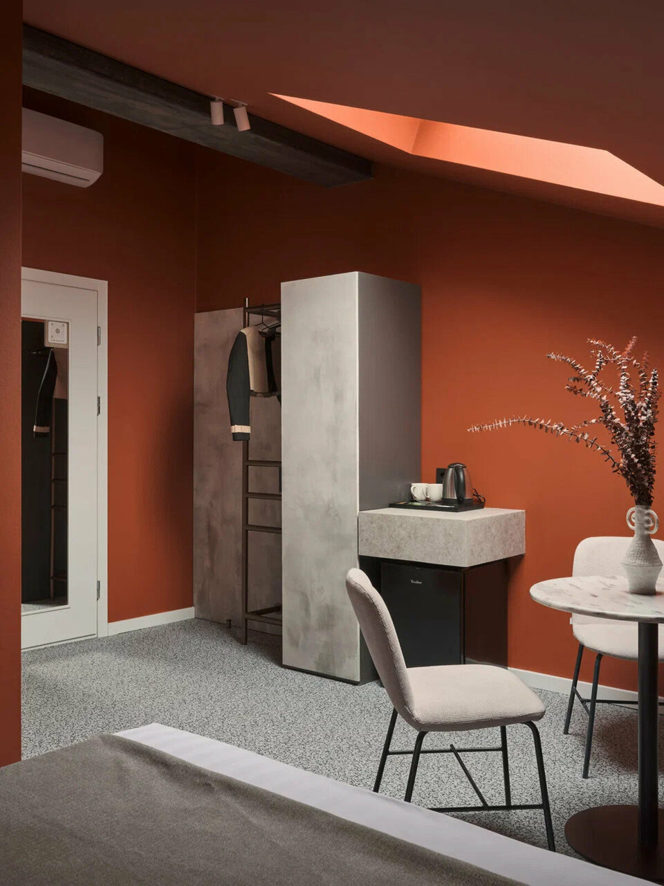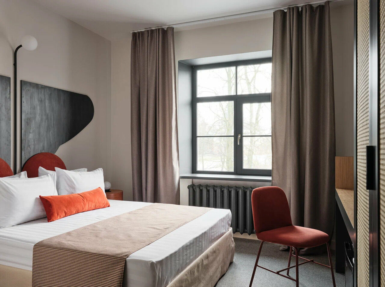 Номера чистые, везде кулеры, есть чай. Очень стильный отель. На первом этаже ресторан, бар на втором. Еда вкусная. Девушка на ресепшн приветливая и вежливая. Есть парковка.