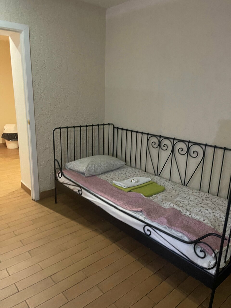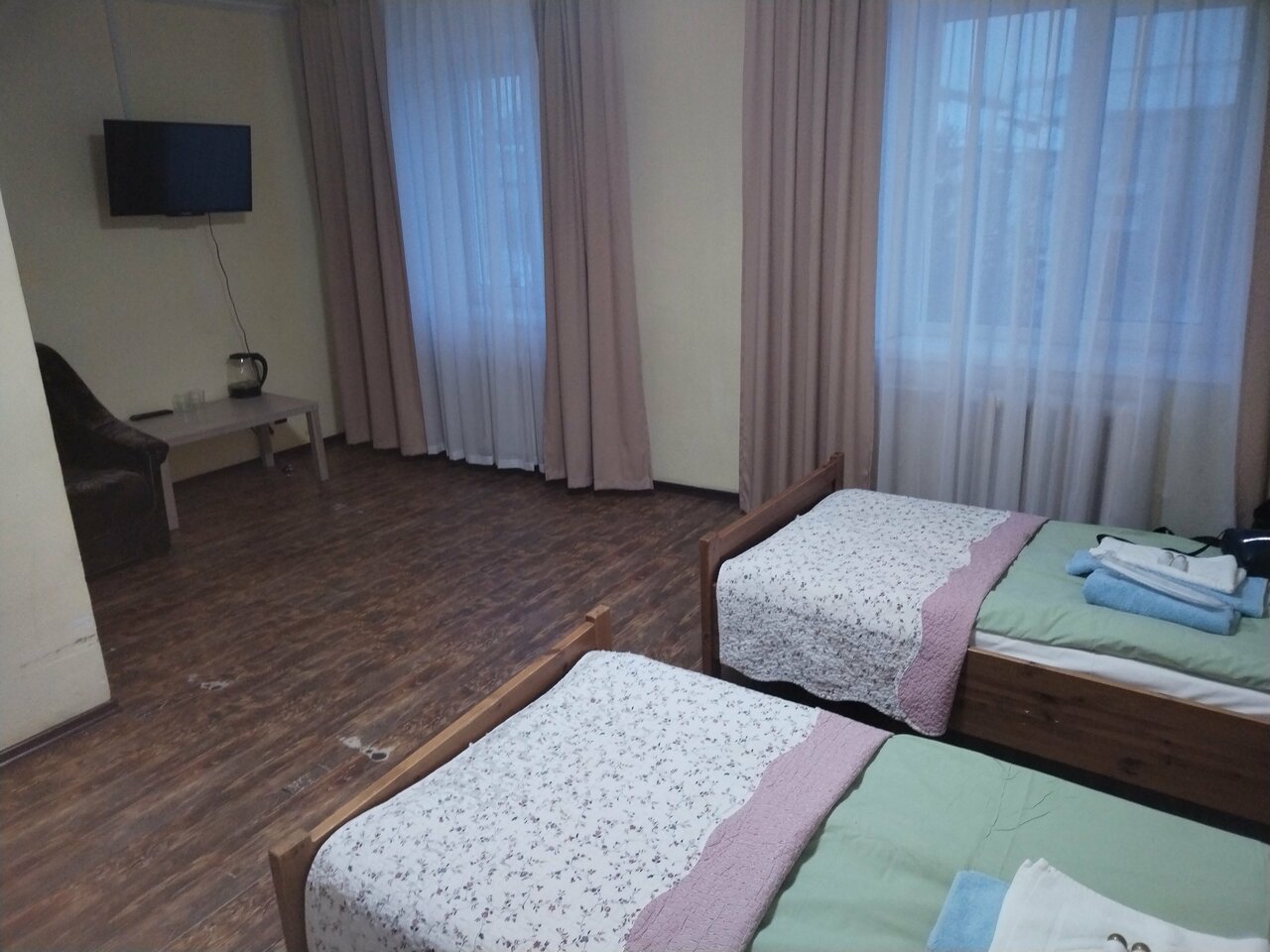 Общага. Брала двушку . 700 руб койка. Верхний этаж.Пятна,старый ремонт.удобства на этаже. Крохотный душ один на кучу комнат. Одно небольшое полотенце.Из плюсов: достаточно туалетной бумаги,есть жидкое мыло. Бутыль с водой на этаже. Перекантоваться на ночь,но не более.