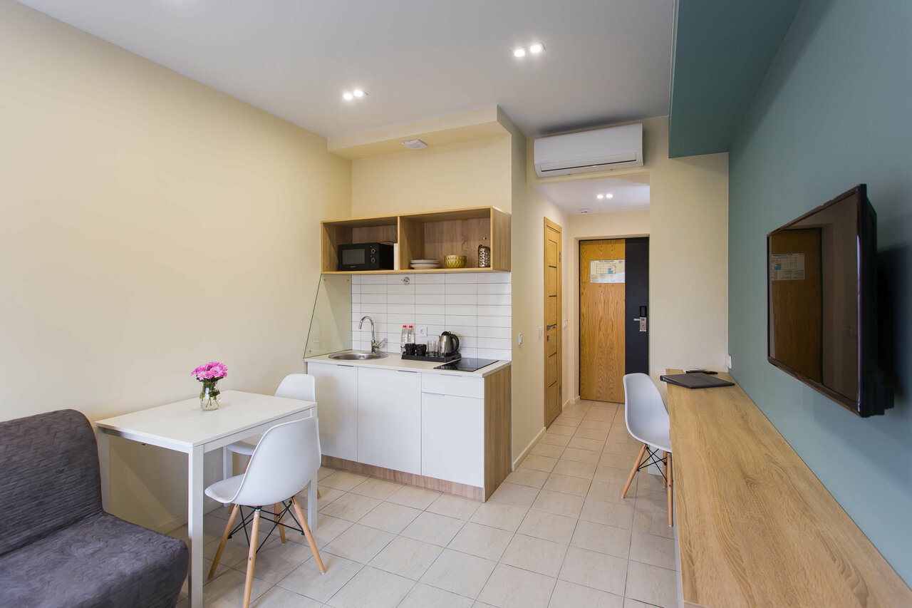 Отличный апарт-отель! Все понравилось. Вежливый персонал, номер чистый, белье белоснежное. В номере есть чайник, холодильник, сейф. Завтрак есть возможность заказать прямо в номер, если есть желание. Локация в центре, 5 минут и ты в Кремле.