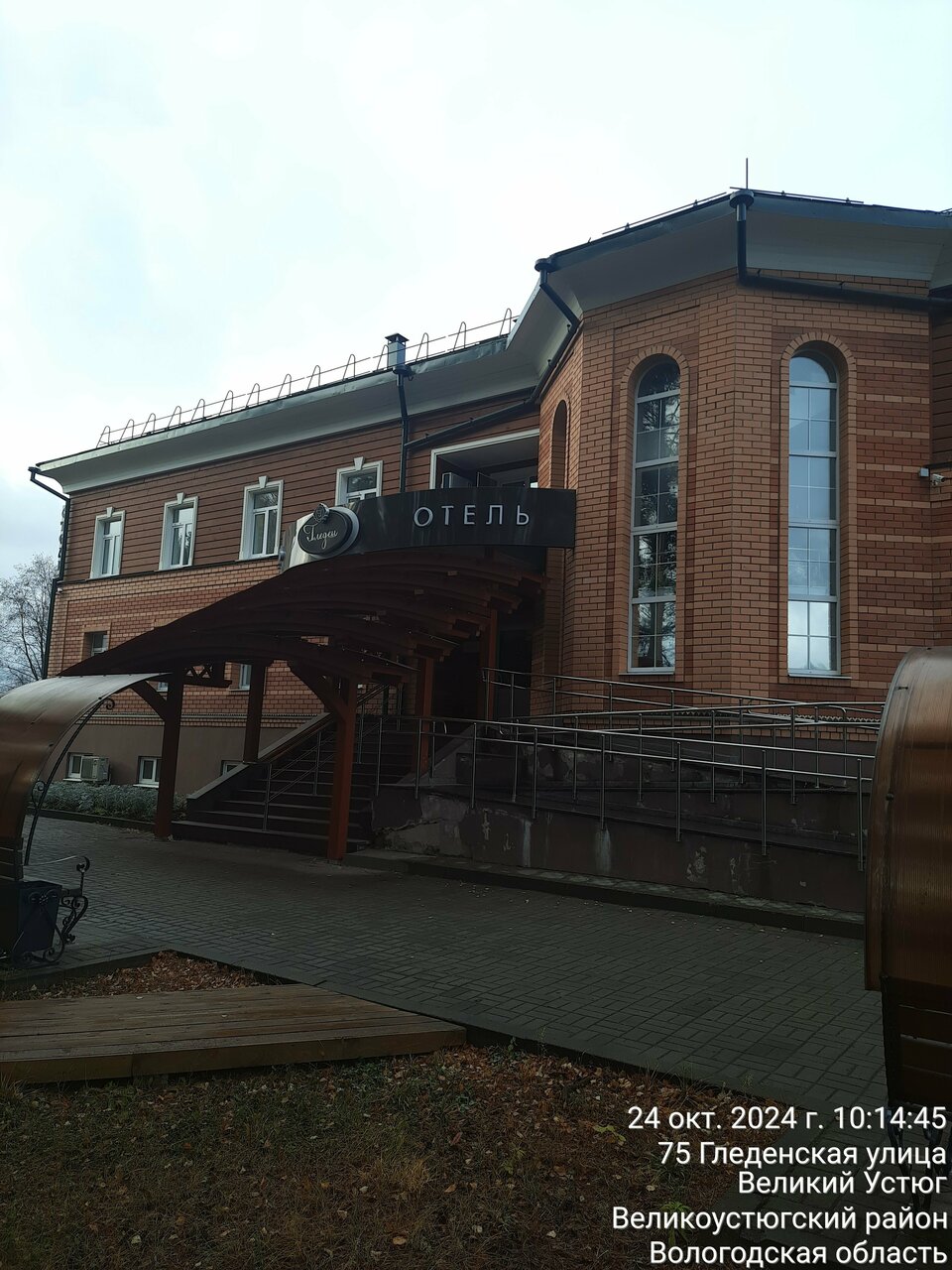 Классный отель, персонал приветливый. Однажды при выезде забыл пальто (переодевался в рабочку), позвонили, сохранили, через месяц забрал))) предлагали почтой отправить. Если поездка в Устюг, то только Гледен.