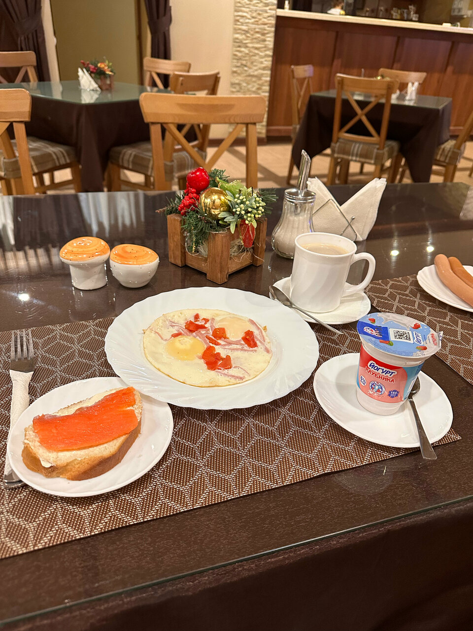 Хорошие, чистые номера. Вежливый и отзывчивый персонал. Что точно, вы никогда не замерзнете в этом отеле. Топят просто на ура. Единственное что вызывает сомнение-крайне тесный санузел. Готовьтесь к этому. И очень грамотно планируйте походы в туалет. После душа туда зайти можно только в резиновых тапках. Завтраки хорошие. Все в целом устроило. Функцию отоспаться после насыщенного отель выполнил на ура.