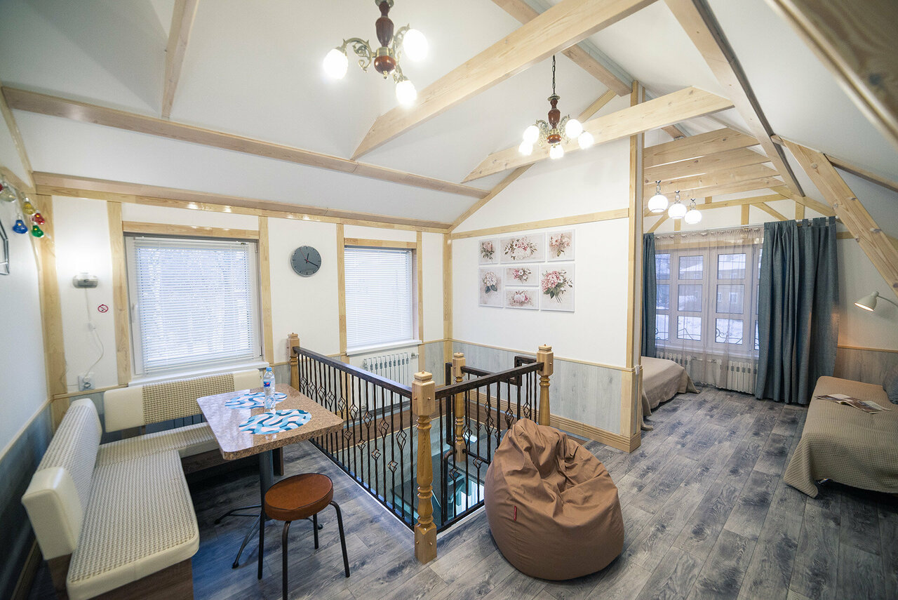 - Приятные и отзывчивые хозяева.; Наличие парковки под окнами.; Дизайнерский интерьер и качественная отделка.; Теплые и тихие номера.; Баня за дополнительную плату.