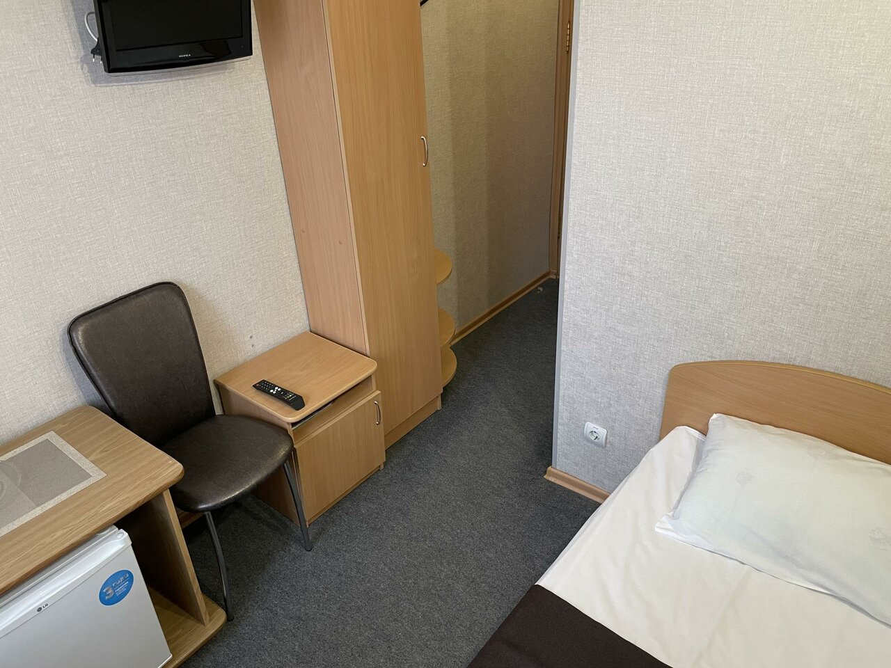 Стандартный одноместный номер. Односпальная кровать, письменный стол, телевизор с плоским экраном, холодильник, кондиционер, телефон, Wi-Fi , собственный туалет и душ, электрический чайник, фен, средства личной гигиены, тапочки, доставка блюд и напит