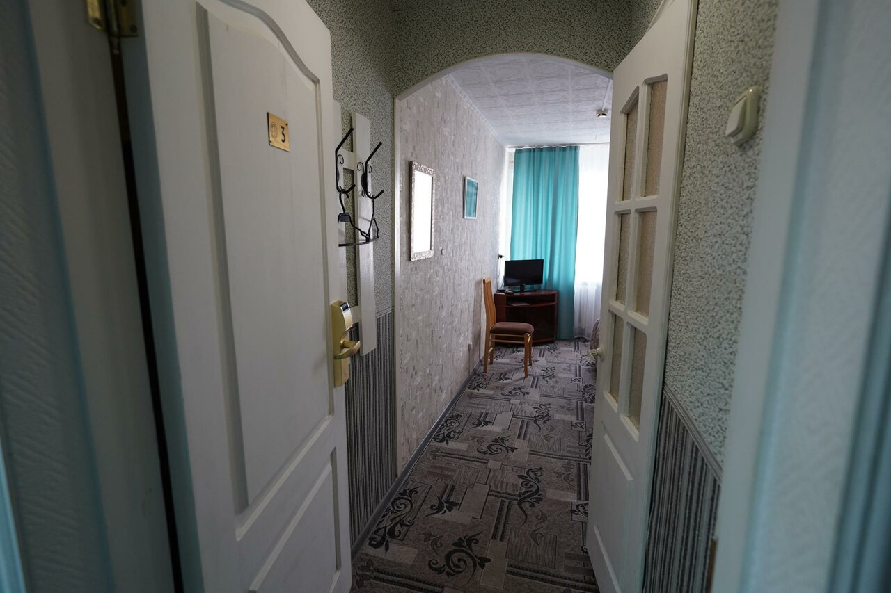 Удобное расположение в центре города. 4этажа, различный уровень цен на номера. Кафе в холле первого этажа открыто с 7 утра до 23 часов. Ассортимент блюд не очень велик, но готовят вкусно. Если поздно придете на обед, может возникнуть ситуация, что горячие первые блюда уже закончились. В номерах хороший косметический ремонт, прибираются ежедневно.
