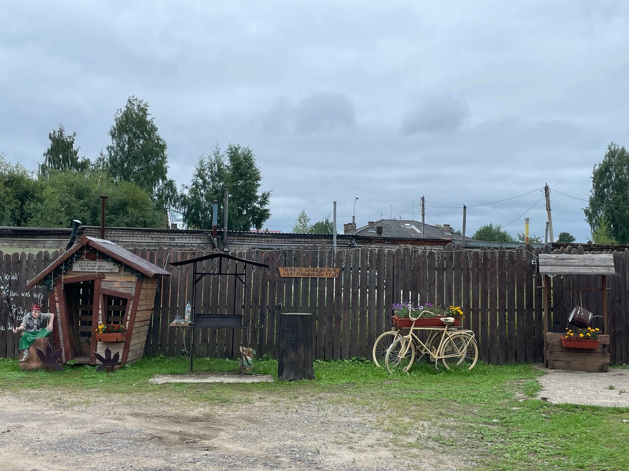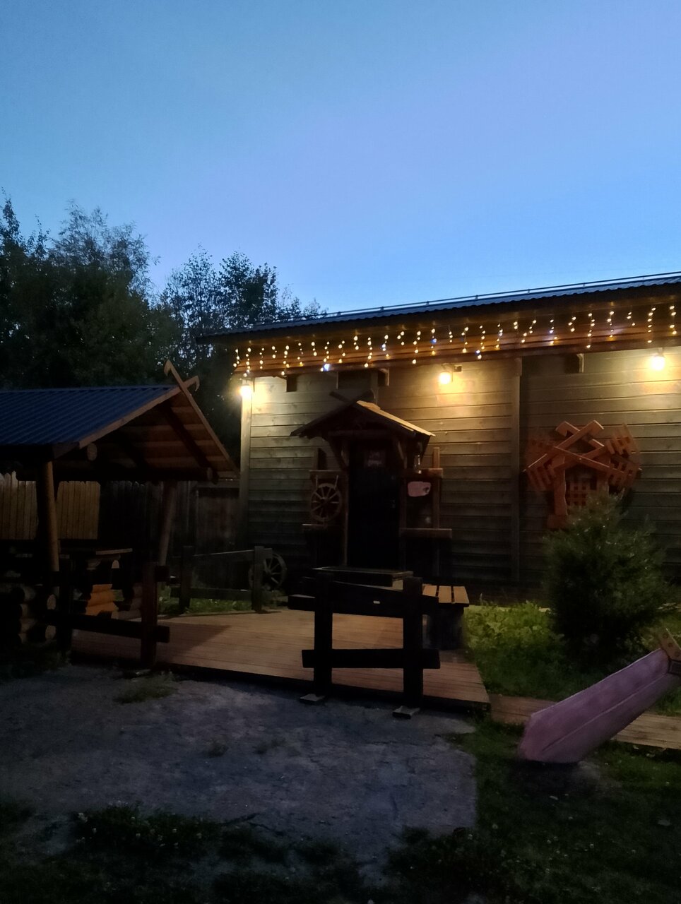 В целом очень антуражно, но есть несколько <НО>, которые не дают поставить пять звезд: 1) расположение в гаражном массиве, территория конечно огорожена, но блин едешь в гостиницу через гаражи.жутковато. 2) Недоделки по дому, в плане оформления, все стилизованно под старину, но, телевизор с проводами просто висит на кронштейне, батареи не спрятаны под элементами декора, стульев на 4 человека ( в стиль стола) и 2 табуретки по 300 рублей, всех предметов на 4 персоны, а не на 6. 3) нет уборки в номерах, приходилось самим все собирать, мыть полы и т.д. Паутины в углах много По остальному вопросов и нареканий нет, отличный отель, но надо немного доделать