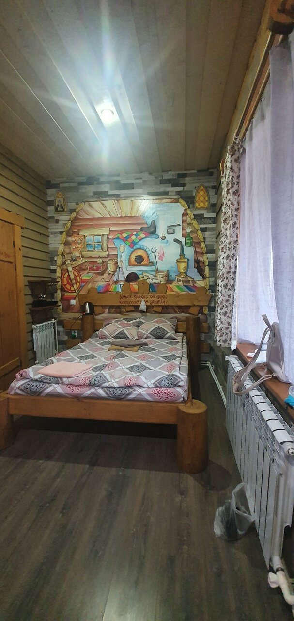 Отдыхали 2 суток в конце декабря. В номере Добрыня Никитич. Интерьер, территория гостевого дома впечатляют. Заезд бесконтактный, в общем коридоре есть холодильник, микроволновая печь, в номере посуда и электрический чайник. Оценку снизила за: 1. Плохую вентиляция (было очень душно), окна под потолком (их весьма непросто открыть, а режима микровентиляции не предусмотрено). 2. Запах воды из под крана (довольно сильный неприятный запах железа). 3. Сколы на кружках. 4. Поломанную крышку в отсеке для батареек пульта (батарейки выпадали постоянно). 3 и 4 пункт-незначительные мелочи, но они создают атмосферу и складывают впечатление.