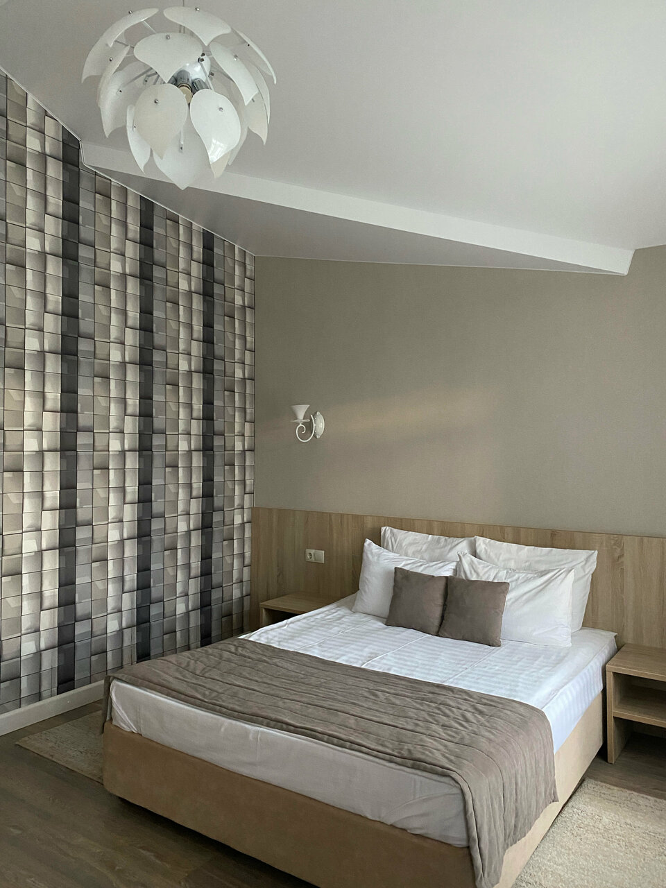 Небольшой номер, идеально подходящий для размещения 1-2 гостей, выполненный в современных тенденциях дизайна интерьера: выраженная строгая геометрия. Номер подходит как для активных путешественников, так и для тех, кто совершает деловую поездку.