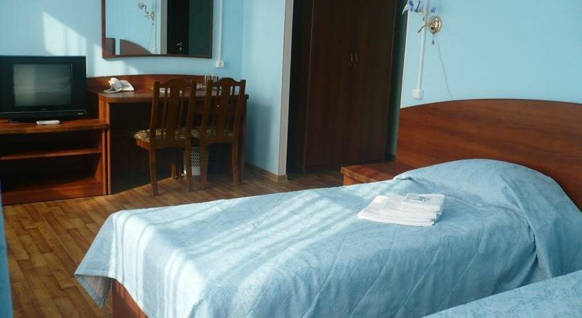 Остановились по срочной необходимости и остались довольны. Сняли двухместный люкс. Номер чистый, халаты полотенца (3шт на человека) телевизор, холодильник, фен. Расстроила ванная комната. Выглядела уже очень уставшей, и очень сильно расстроило отсутствие держателя душа. Мыться оказалось очень не удобно. В гостинице есть кафе — столовая очень приятными ценами и хорошим питанием. Основным минусом было отсутствие администратора на месте во время нашего приезда, нам нужно было срочно узнать если места, а администратора нет. Спасибо не равнодушным работницам сообщили, что номера есть.