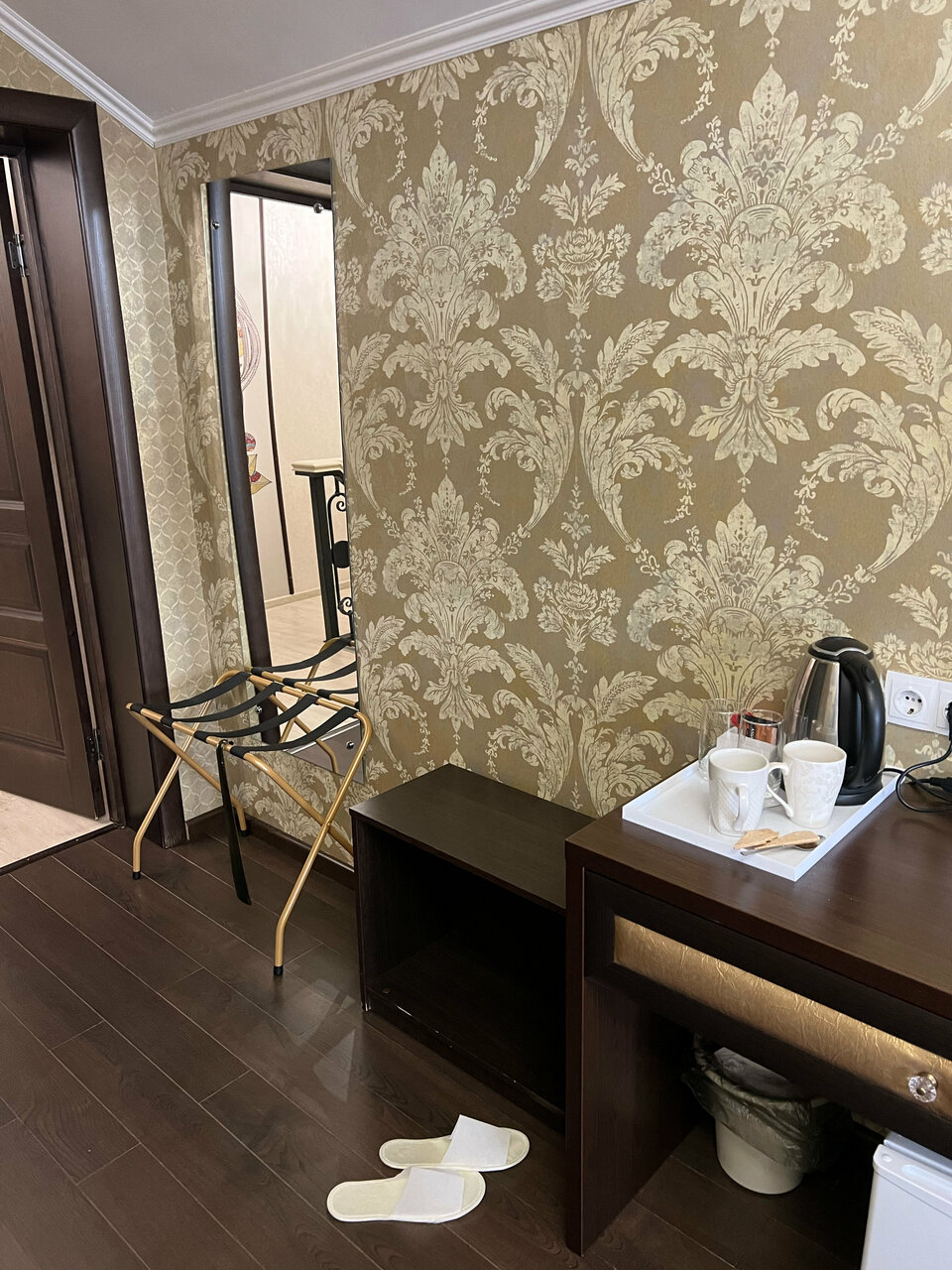 Сгнившее все в ванной. В отеле 2 корпуса. В новом корпусе всё ещё прилично. А в старом всё уже прогнило. Номер Холмогоры нереально маленький! Невозможно ходить, не обтирая стены. Полотенца серые.