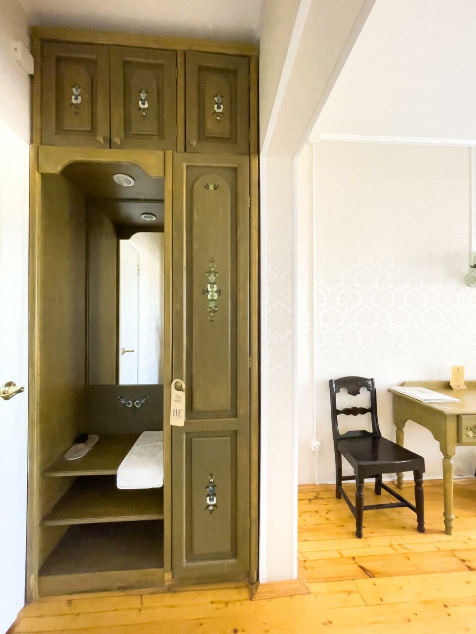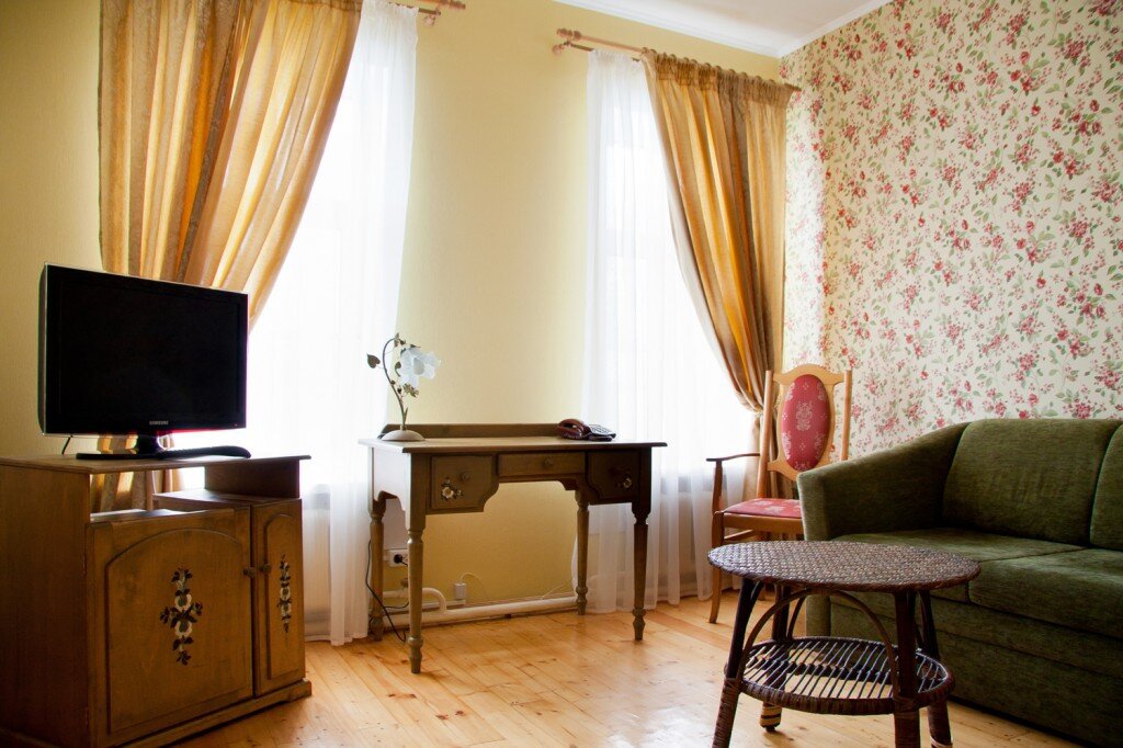 гостиница антуражная, попадаешь как будто на 200 лет назад, во времена достоевского:) номера маленькие, но в них чисто и уютно. В холле библиотека, можно брать книги и читать. в коридорах вообще можно ходить как по музею. из всех этих положительных впечатлений, ‘специфичным’ можно назвать только завтрак…. из за ‘специфичного’ официанта,… но и он подарил нам улыбку и положительные эмоции гостиницей довольны.
