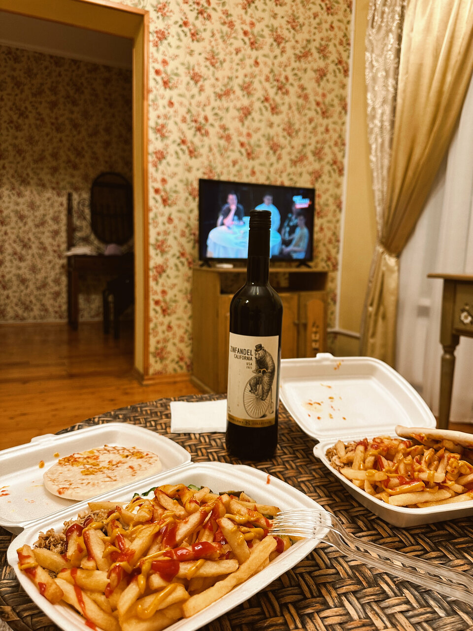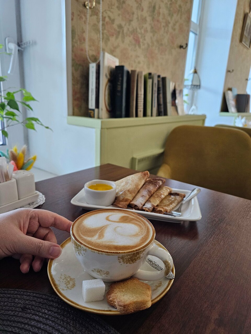 Запах старого здания, плохая уборка, очень шумная ночью улица. Кафе безалкогольное, еда ‘ Из под ножа’, без изысков, но достаточно вкусная.