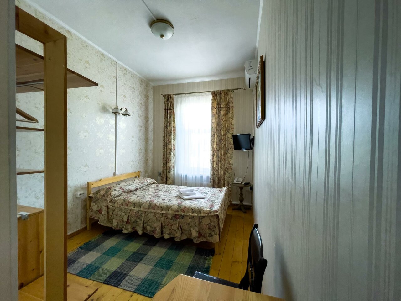 Двухместный номер со всеми удобствами. Кровать совмещенная, шириной 140 см. В номере есть: кондиционер, телевизор, холодильник, фен.
