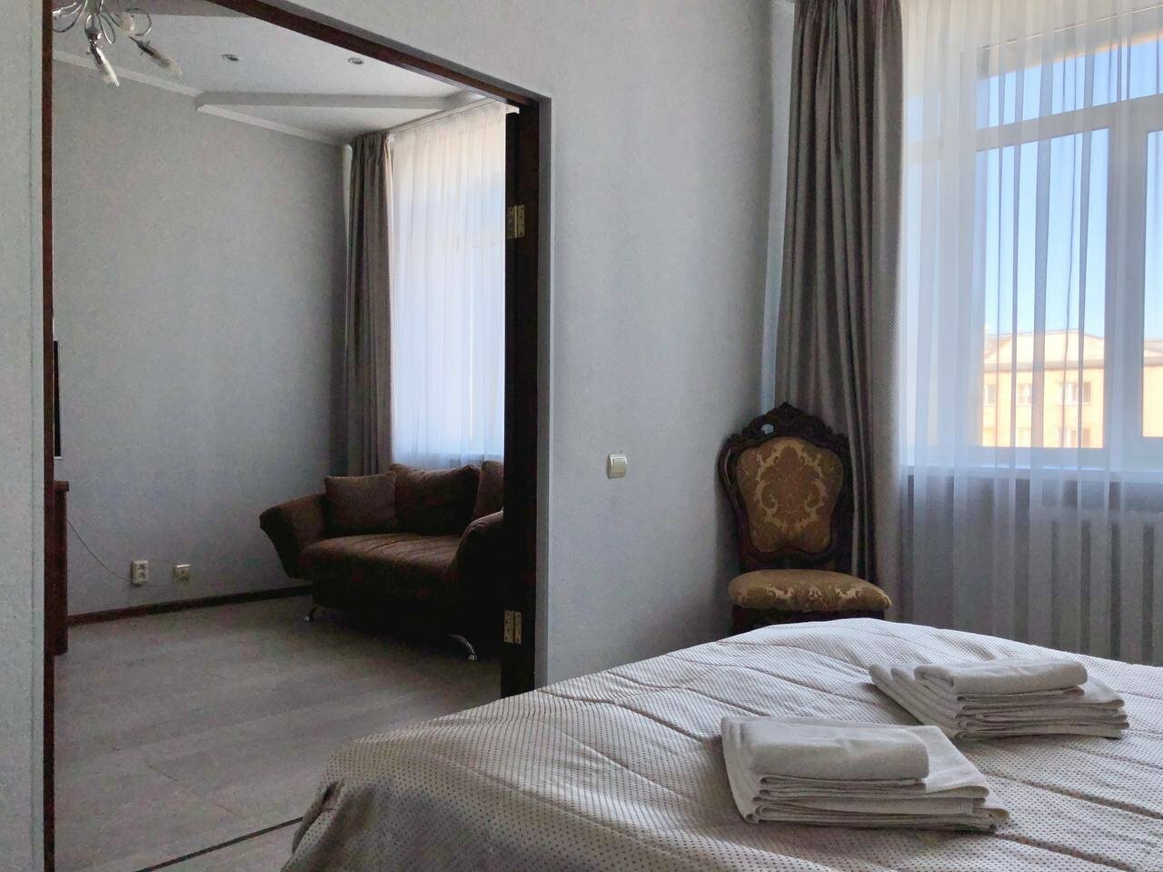 Изысканные двухкомнатные апартаменты с современным дизайном интерьера, площадью 35 кв.м. Комната оборудована так, чтобы создать клиенту максимально комфортные условия, даже когда он далеко от дома.В комнате есть все для работы и отдыха: большая д...