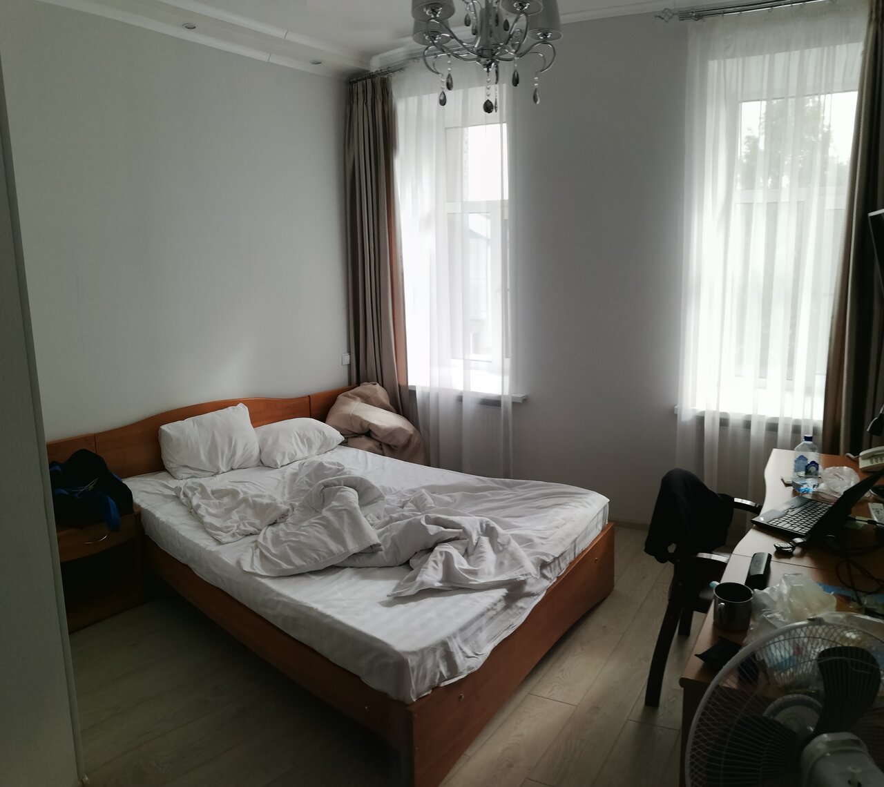 Впервые вижу такой хороший номер категории ‘стандарт’ в гостинице в маленьком городе. Уборка номера на высшем уровне, есть всё, что необходимо гостю: питьевая вода в бутылках (в коридоре даже есть кулер), телевизор, холодильник, фен, одноразовые гигиенические наборы (гель для душа, шампунь, мыло, зубная паста, зубная щётка и махровые халаты с тапочками). Разочаровал только матрац, в котором ощущалась каждая пружина. Видимо, матрасы не меняли уже 20 лет (конкретно, номер 416). Обращаться на ресепшн для смены номера не пришлось, потому что я не останавливался на ночь в гостинице и спал всего два часа днём. Но матрац — тихий кошмар. Самое главное для гостя отеля — отдохнуть, выспаться, а для этого нужно ни что иное, как удобный матрац. Надеюсь, администрация отеля обратит внимание на этот нюанс.