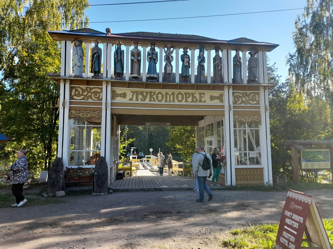 Очень зелёная территория. Получаешь удовольствие от прогулки по деревне. Рестораны не посещала. Сувениры дороговато, выбор хороший. Находилась в деревне по экскурсионной программе на теплоходе
