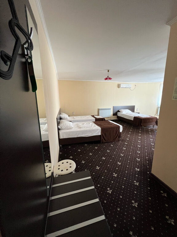 Останавливались 19.08.22. Утром забронировали номер, заранее. Не знаю, можно ли просто приехать, будут ли номера. После 9 вечера стали прибывать люди и утром по моему ощущению, было занято как будто все… Место хорошее, легко найти. Брали номер на 3,кровать и двухярусная. Достаточно широкие, я с маленьким ребёнком уместилась на одной. Постельное белье , полотенца, душ, тв, чайник, стаканы в номере . Всё чисто, приятно. В отеле кафе, цены норм, рядом магазинчик со всякой всячиной, едой, посудой и пр и пр. В главном холле есть холодильник, куда можно поставить еду, вай фай. Нам понравилось. Кровати удобные, что важно после дороги. В общем, хорошее место. Цена нашего номера 2400.