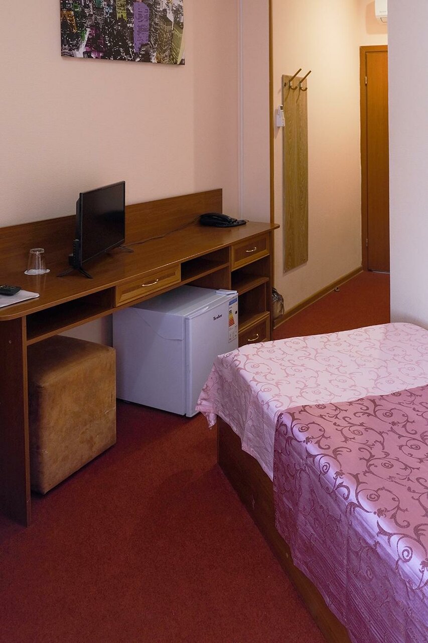 Подробнее об оснащении:- Обстановка. В номере помимо комфортной кровати и диванчика есть прикроватные тумбочки, стол, за которым можно поработать с ноутбуком или документами, а также вместительный платяной шкаф.- Техника. Современный телевизор.