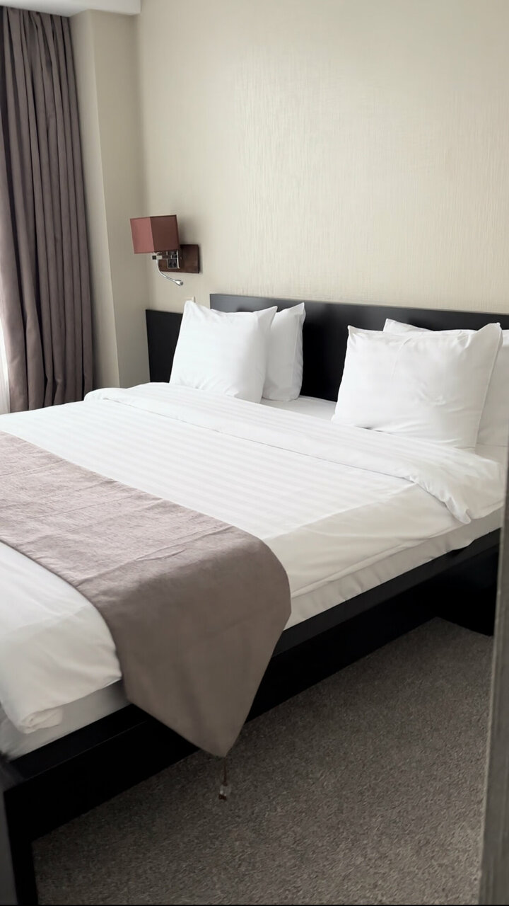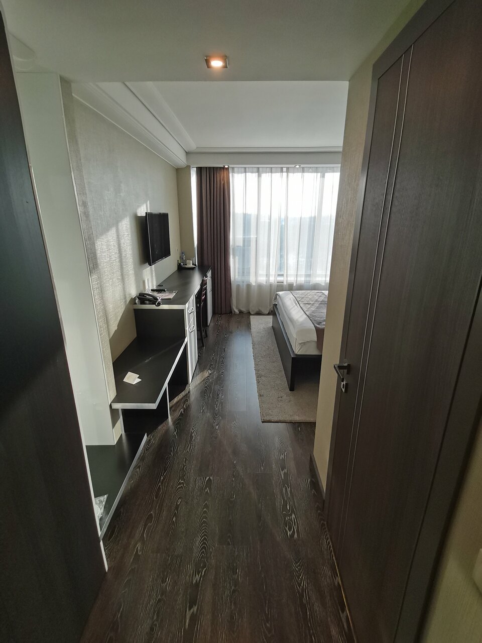 В первые было не очень комфортно в отеле, в коридорах очень темно и мрачно! Сама цветовая гамма в номерах , приятных кофейных оттенков, в номере присутствует все что необходимо, холодильник, чайник, тапочки, халаты, зубные наборы, мыло, гель и ид! Номера убраны на 3-ку, чашки кофейные были с подтеками. Двери не закрываются изнутри! Завтраки один день был шведский стол, второй день обслуживали в кафе, где два бедолаги, обслуживали за завтраком по 40 мин на 1-2 гостя, кого-то вовсе не замечали. Сама еда на 4-ку Персоналу так же нужно поучится вежливости, девушка на ресепшене сначала сидела, а потом как я прошла на завтрак не туда ( к сожалению об этом не сказано было, что завтрак сегодня в другом месте) начала бежать за мной и кричать, мол девушкааа завтрак в кафе! Переспросив где именно? Получила полный игнор! Спасибо)