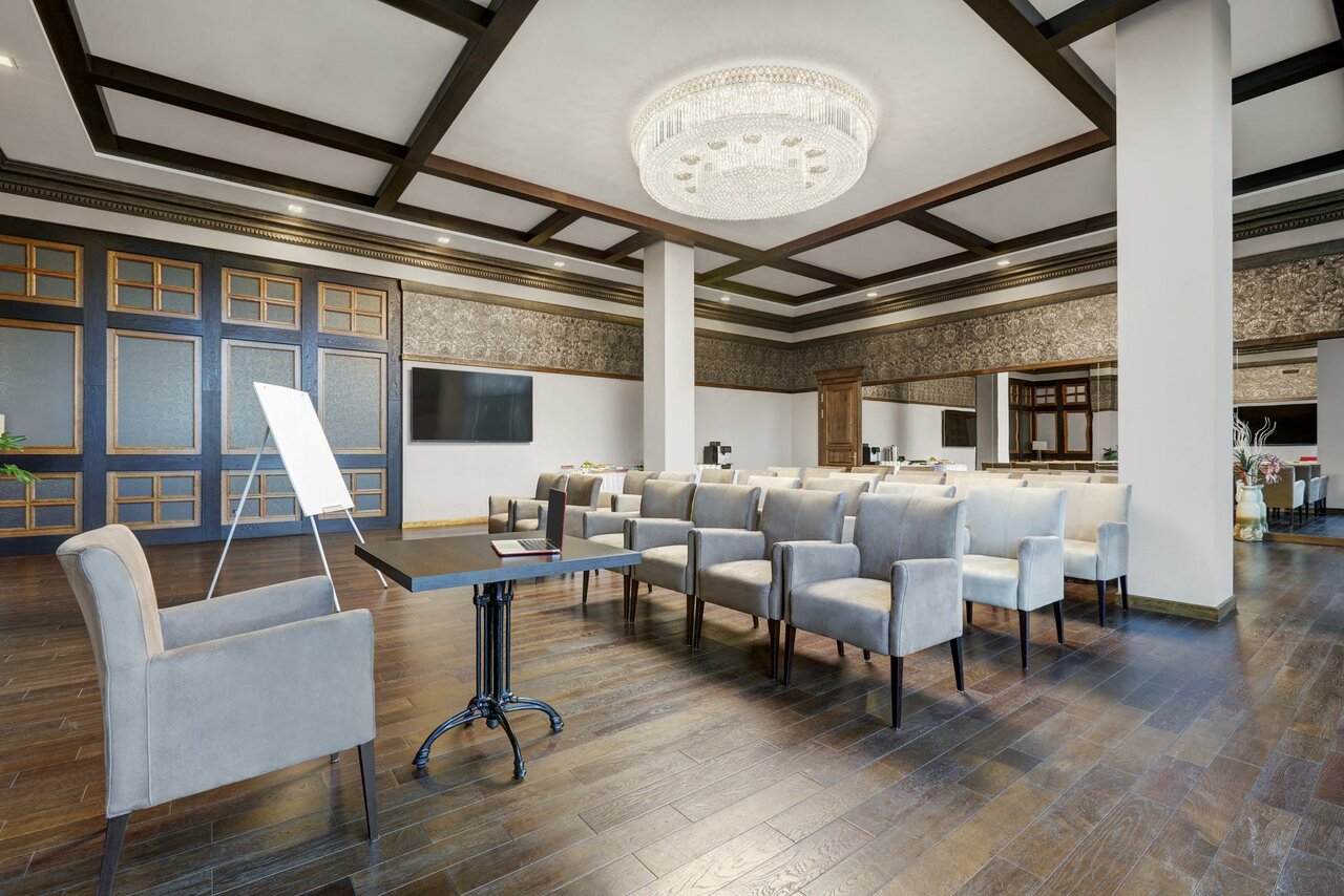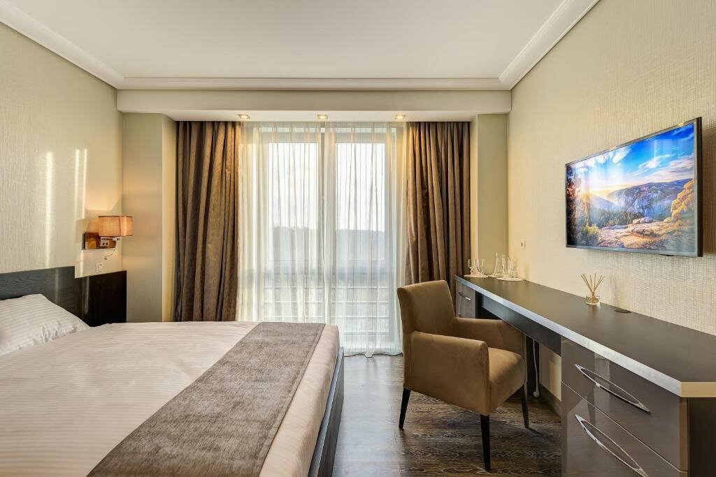 К услугам проживающих: — Просторные номера с кондиционером, Wi-Fi, телевизором и мини-баром. — Ресторан, бар, кафе, а также разнообразные варианты питания (завтрак, полупансион). — Крытый бассейн, тренажёрный зал, SPA-зона, сауна, хаммам и массаж (часть услуг платная). — Бесплатная парковка, трансфер (платный), бизнес-центр и конференц-зал. — Детские услуги: площадка, анимация, кроватки, меню. — Дополнительно: банкетный зал, караоке, боулинг, салон красоты, прачечная.
