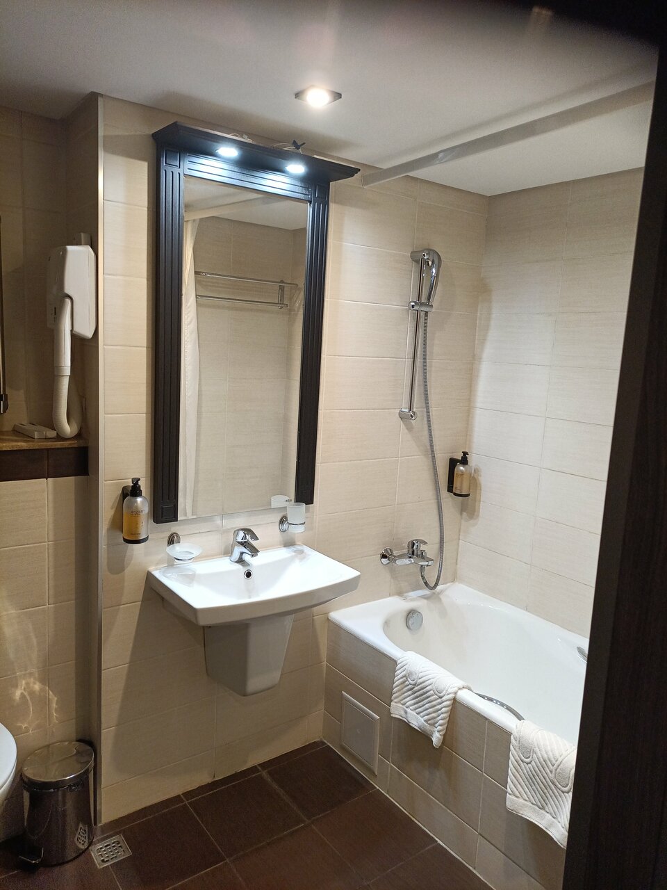 Чистые номера, хороший ресторан, расположен в зелёной зоне, до центра города 25 минут пешком. Вода в ванной была жёлтая и очень долго сливалась, пробка слива не работала — в итоге просто вытащили. Ну это так, мелочи.