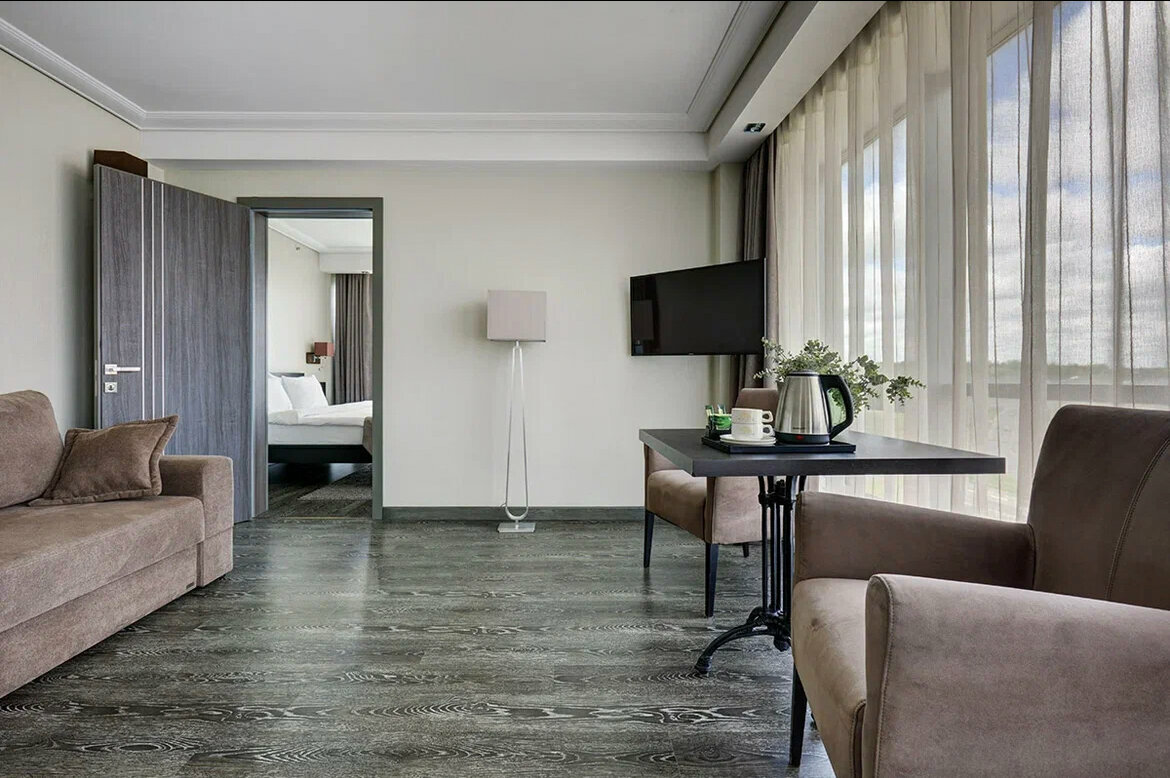 - Свежий ремонт и хорошая мебель.; Сертификат на посещение терм в соседнем ТЦ.; Огромный ресторан с большим количеством посадочных мест.; Чистота в номерах и на территории.; Вкусная еда, особенно завтраки.