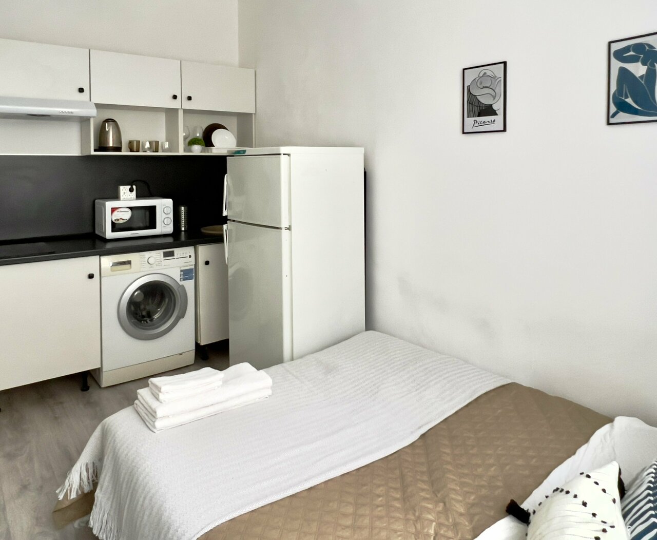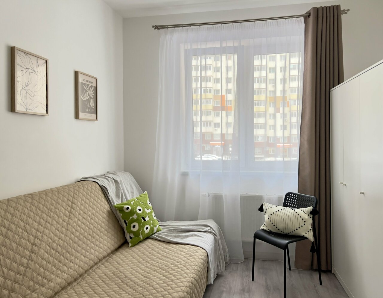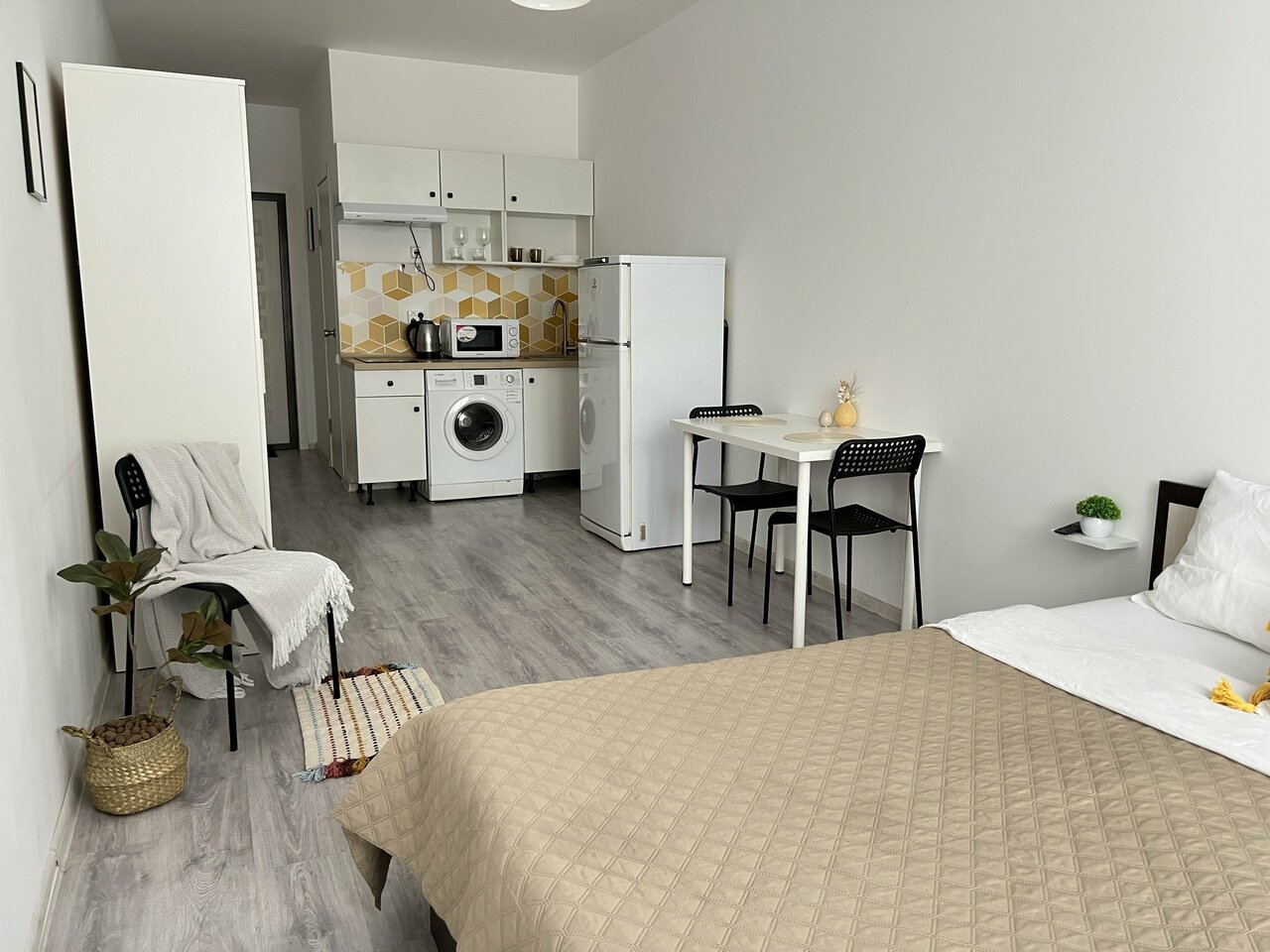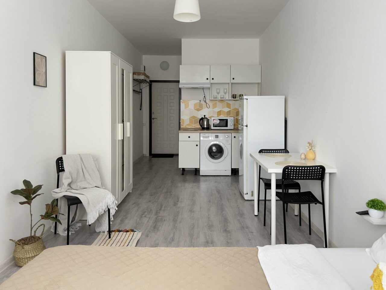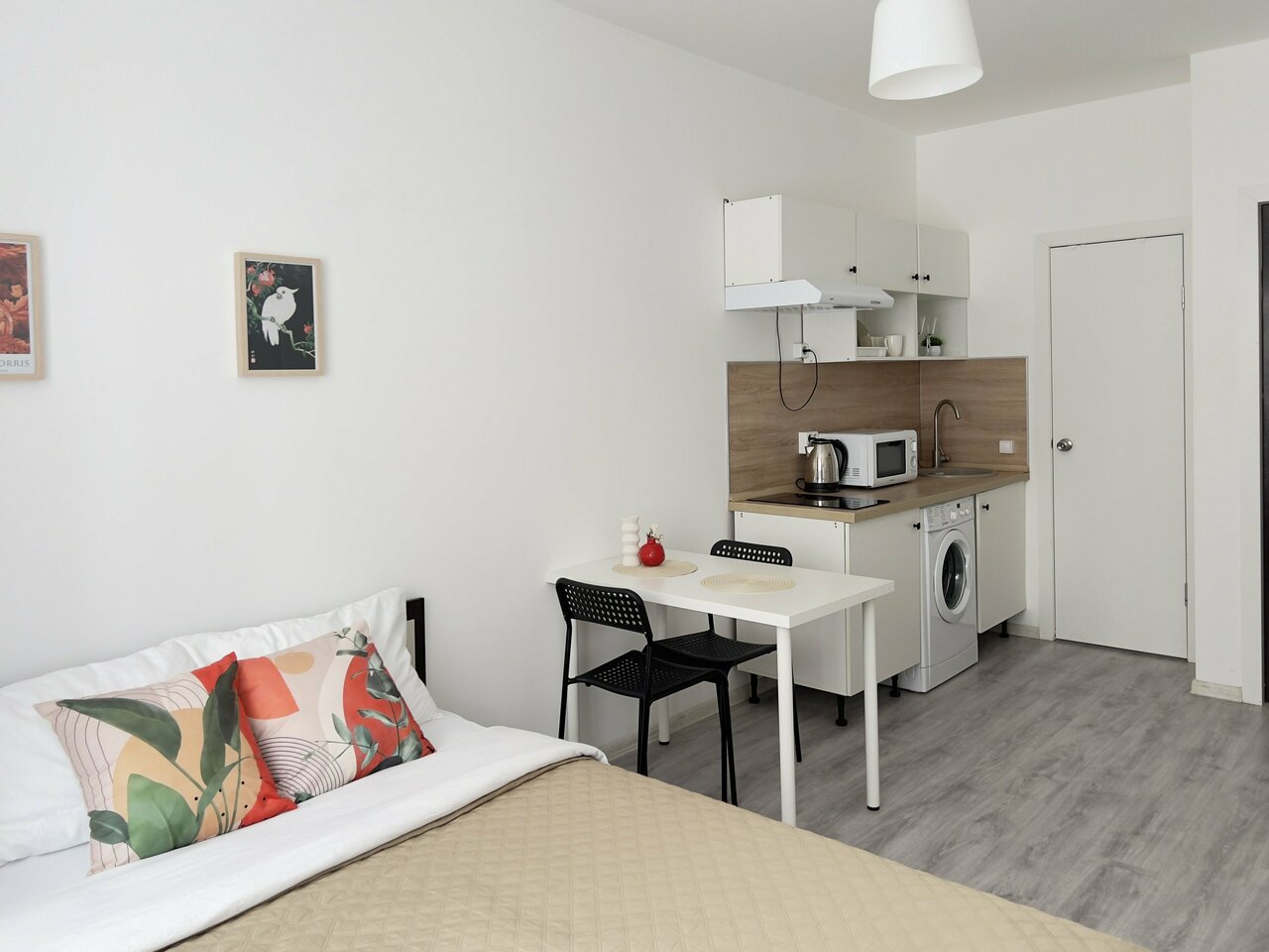 'Счастье — это место, где вы чувствуете себя как дома. Добро пожаловать в Апартаменты Happy People!'Уютная мини-студия в спальном районе для 2х гостей — идеальны как для семейного отдыха, так и для командировки.