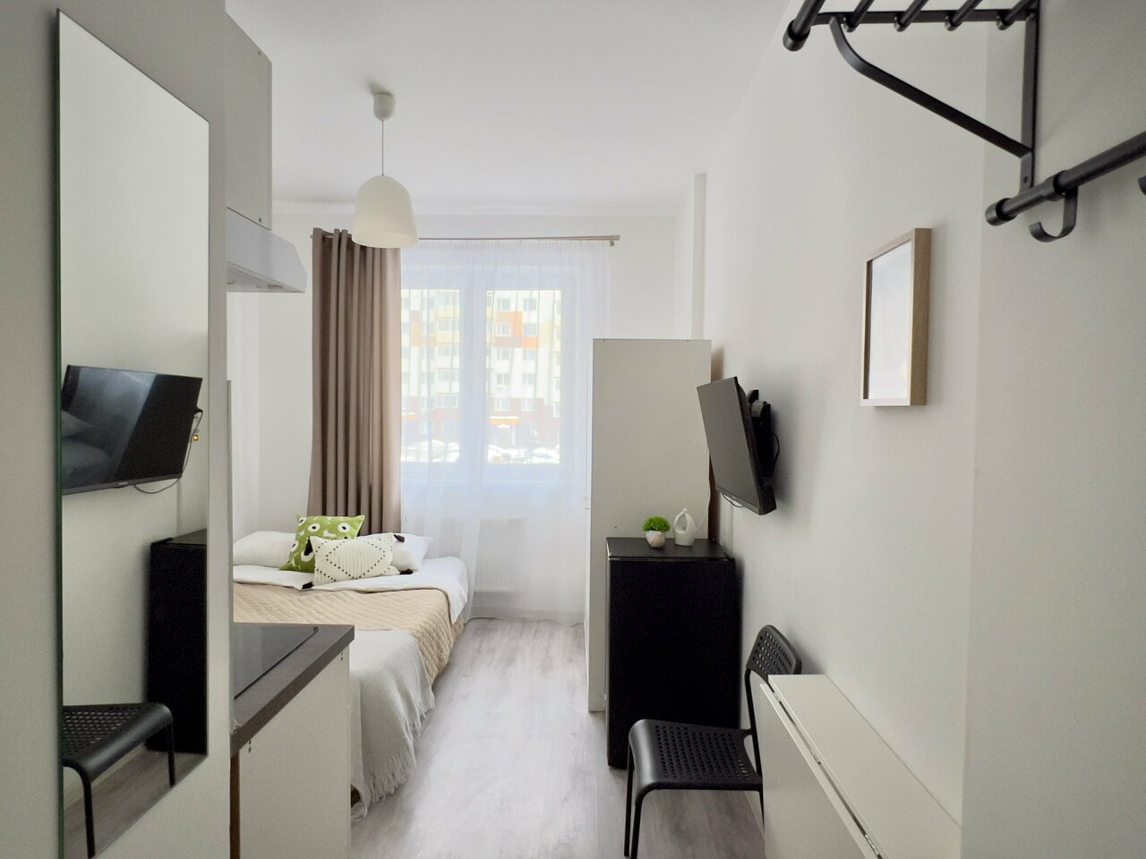 'Счастье — это место, где вы чувствуете себя как дома. Добро пожаловать в Апартаменты Happy People!'Компактная мини-студия в спальном районе для 2х гостей — идеальны как для семейного отдыха, так и для командировки.