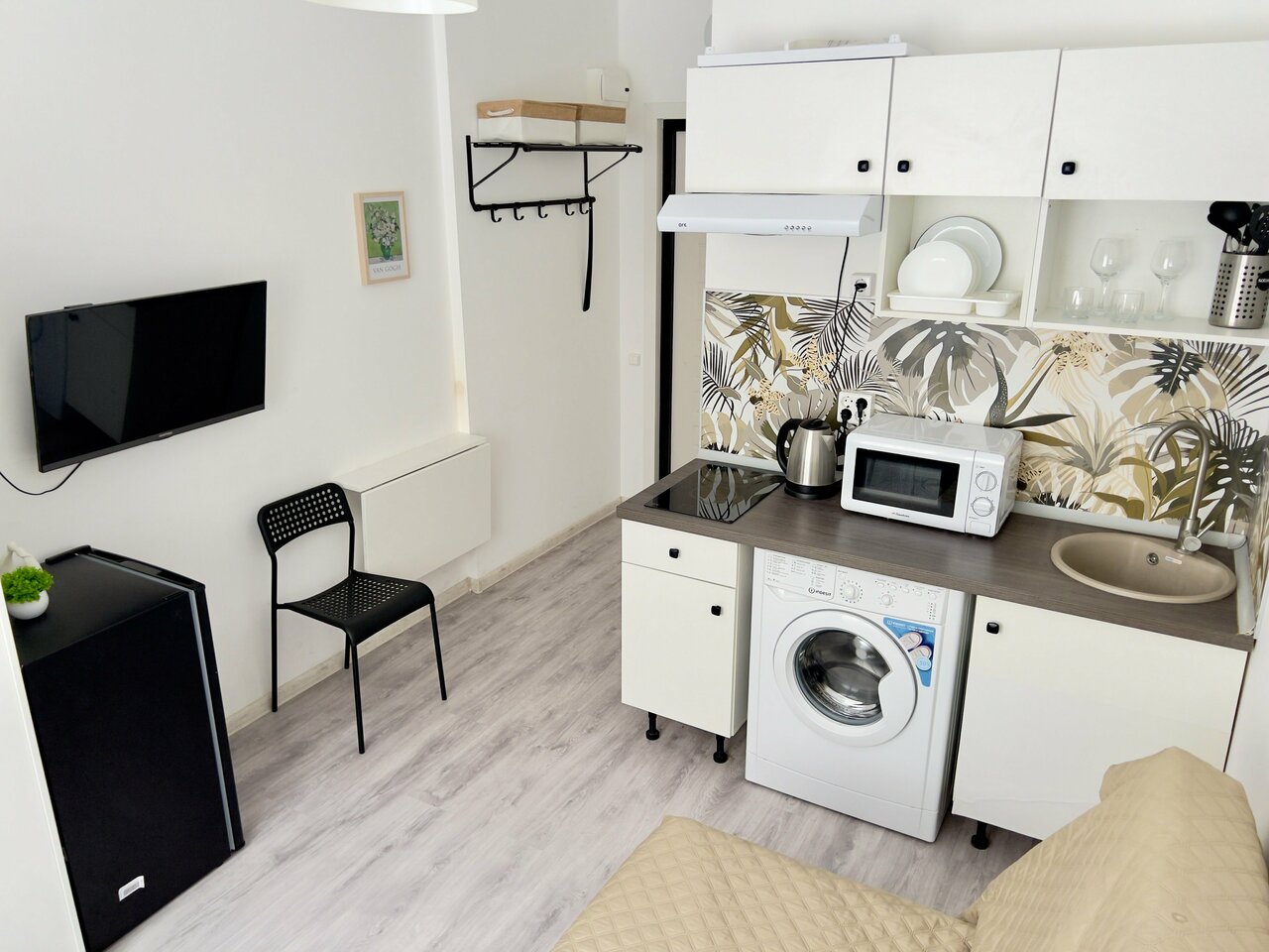 - Хорошая оснащенность (холодильник, индукционная плита, СВЧ, чайник, посуда, стиральная машина).