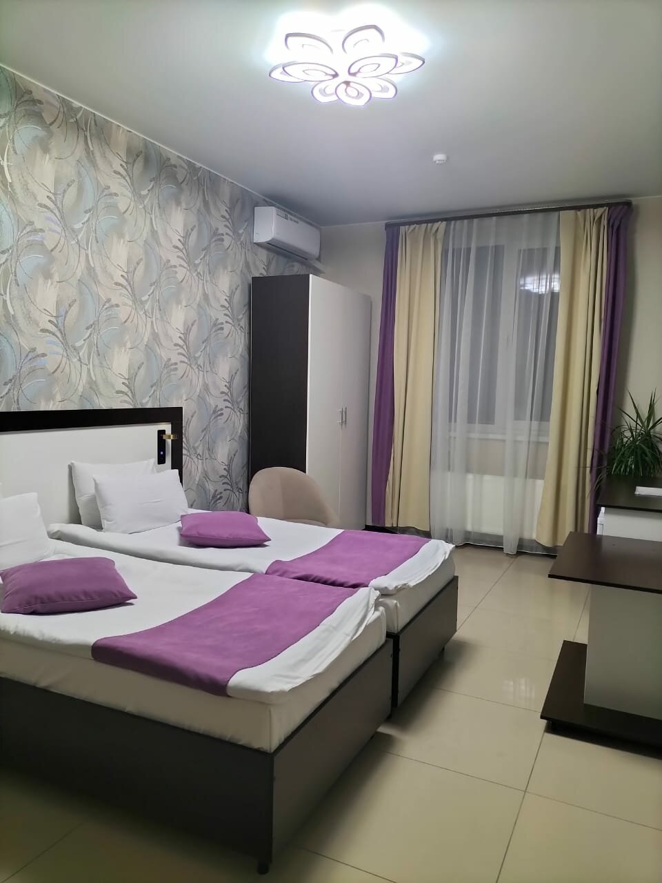 Чисто, аккуратно. Все необходимое есть. Останавливались переночевать. Устроило впроне. Постель и полотенца свежие, телевизор, холодильник и кондиционер — все в исправном состоянии. Внизу магазин 5-ка. Из минусов в номере нет чайника. И пососедству кафе, шумновато. Возможно попали в выходной, а не будний день…