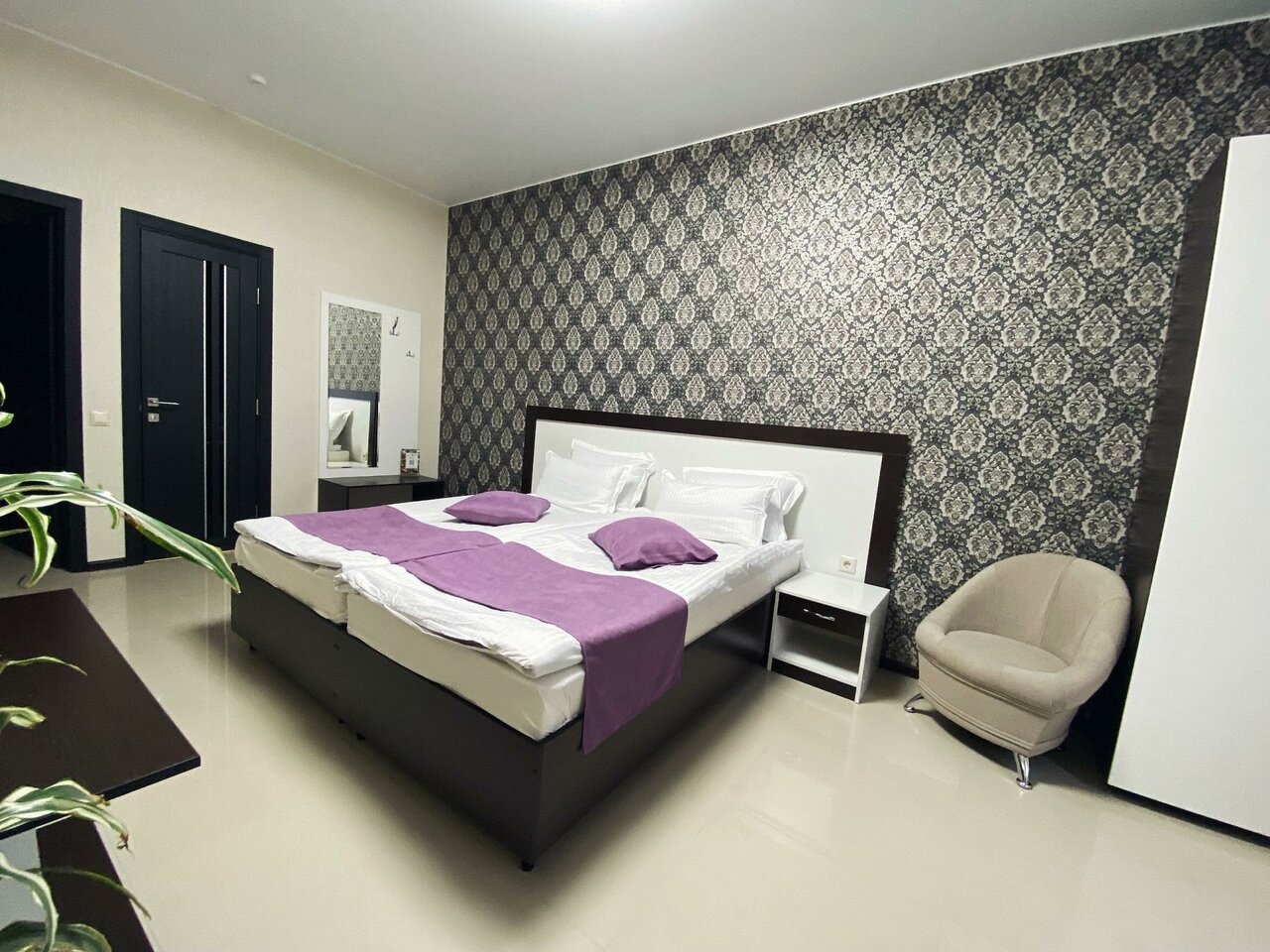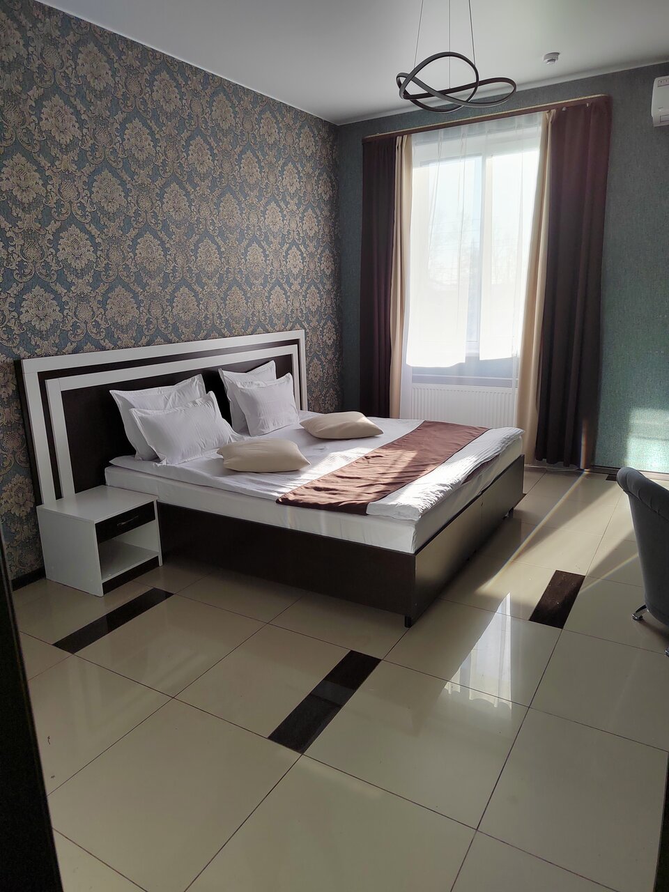 Не раздельная кровать, диван раскладной, комфортабельный номер с туалетом, ванной, феном, холодильник с баром, телевизор 43' со смарт-тв, кондиционер и бесплатный wi-fi