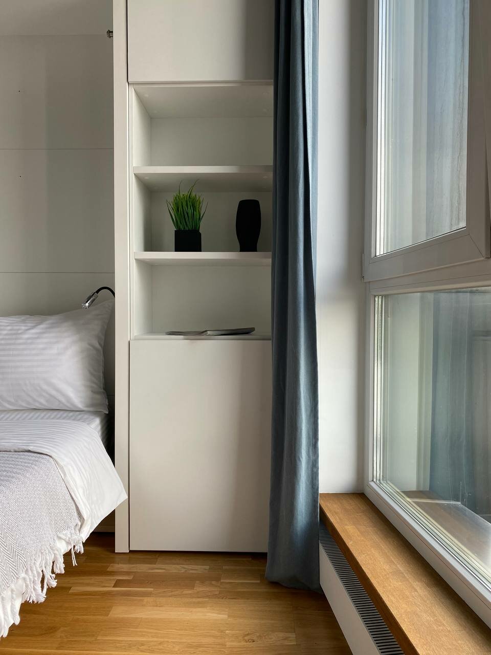 · до 3-х человек · спальные места: кровать + диван · этаж 7/16· площадь 27 кв.м.· смарт ТВ· стиральная машинка, фен, утюг, чайник, холодильник · Wi-Fi· белоснежное постельное белье · стиральный порошок, шампунь, гель для душа
