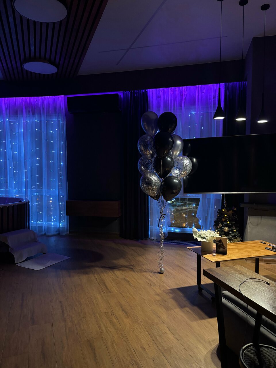- Уютная атмосфера (RGB-подсветка, большой телевизор).